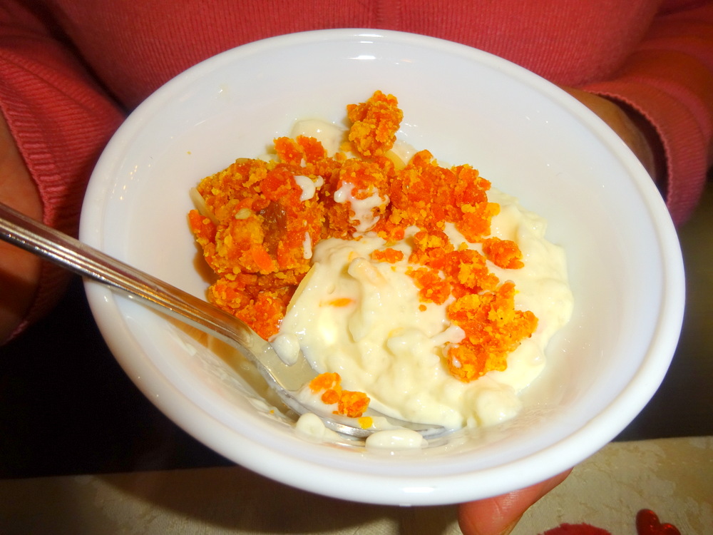 Rather than have Marg sit watching me eat, our Hostess offered Marg a choice of Dessert from the Buffet display. The first time I brought this sugary creation back to Glasgow from Bradford, Marg was not particularly impressed. Now that it is spreading across the land she is becoming used to it. Not for a Hector.