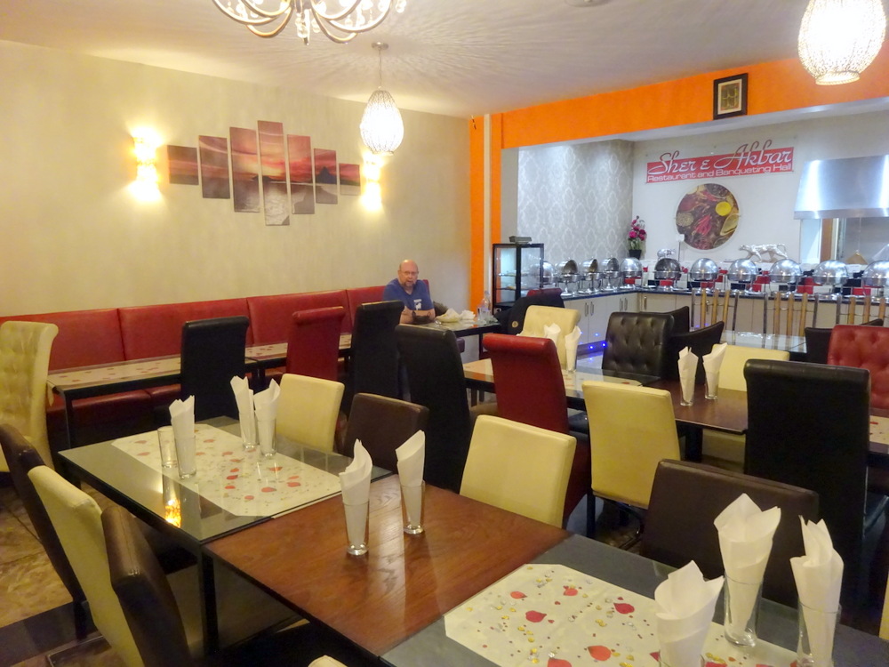 The taxi driver said he had never heard of Sher e Akbar, on dropping us off he suggested the venue had recently been re-branded. Research reveals it was previously – Desi Buffet. We entered after 21.00 to find a large group of chaps, many in turbans, here for a celebration. One assumed that a BYOB policy operates here given the quantity of wine and spirits on the table. They were having a good time.
