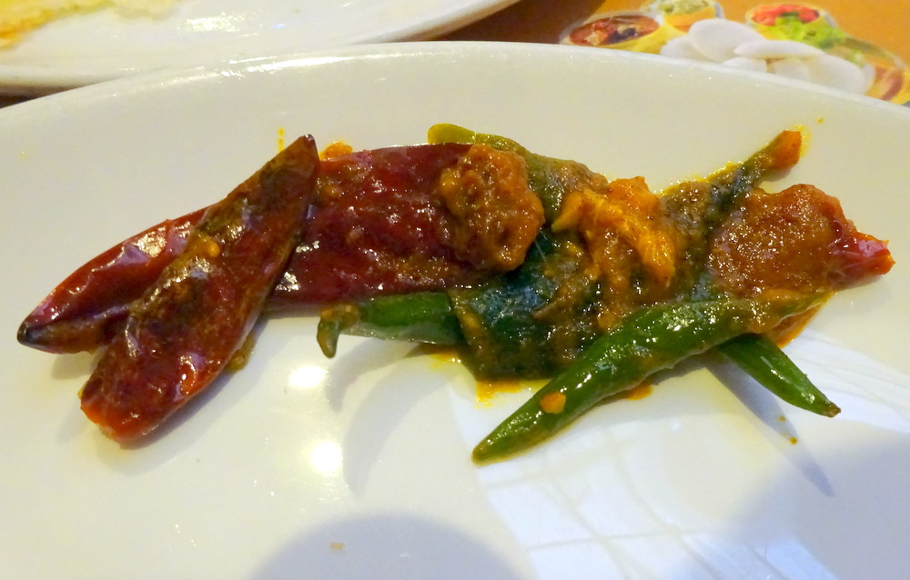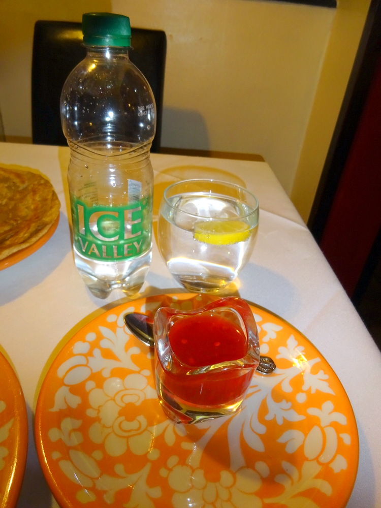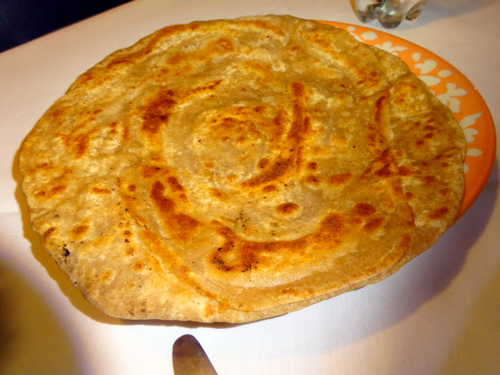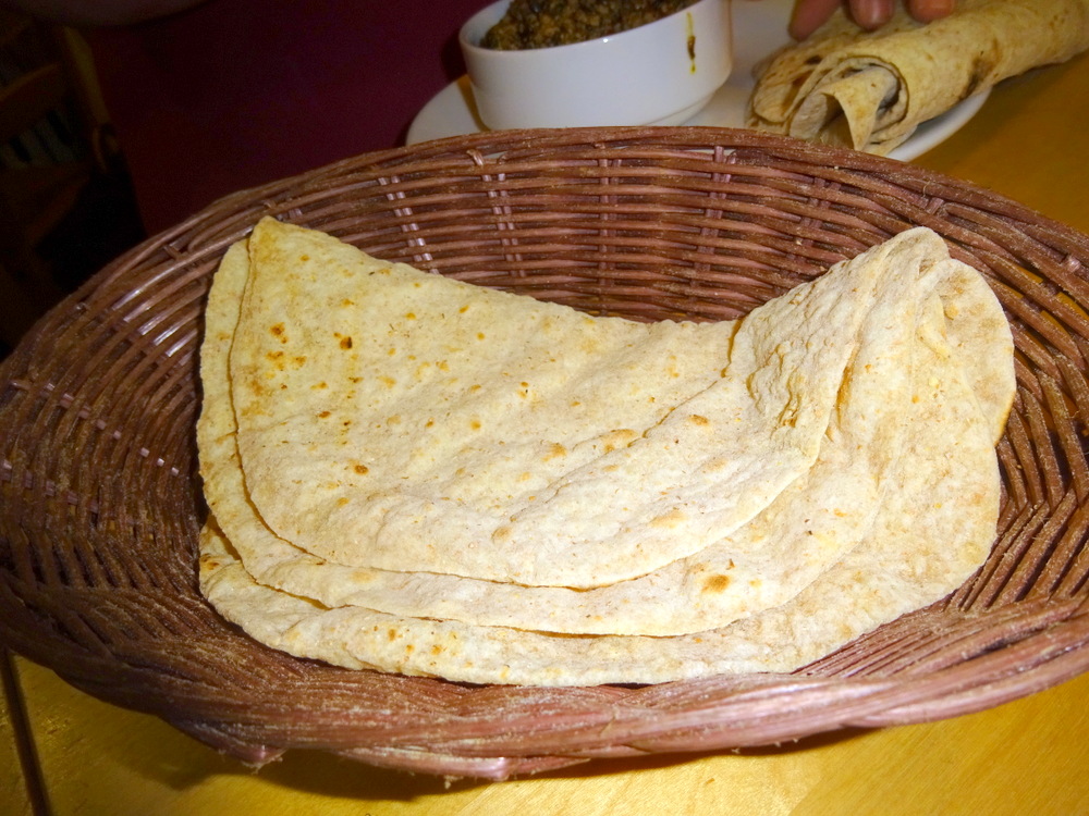 I could see quite a bit of the operation in the open kitchen. The karahi with the Lamb Handi were placed on the counter and the pile of Chapattis assembled. The boy brought these to the table: