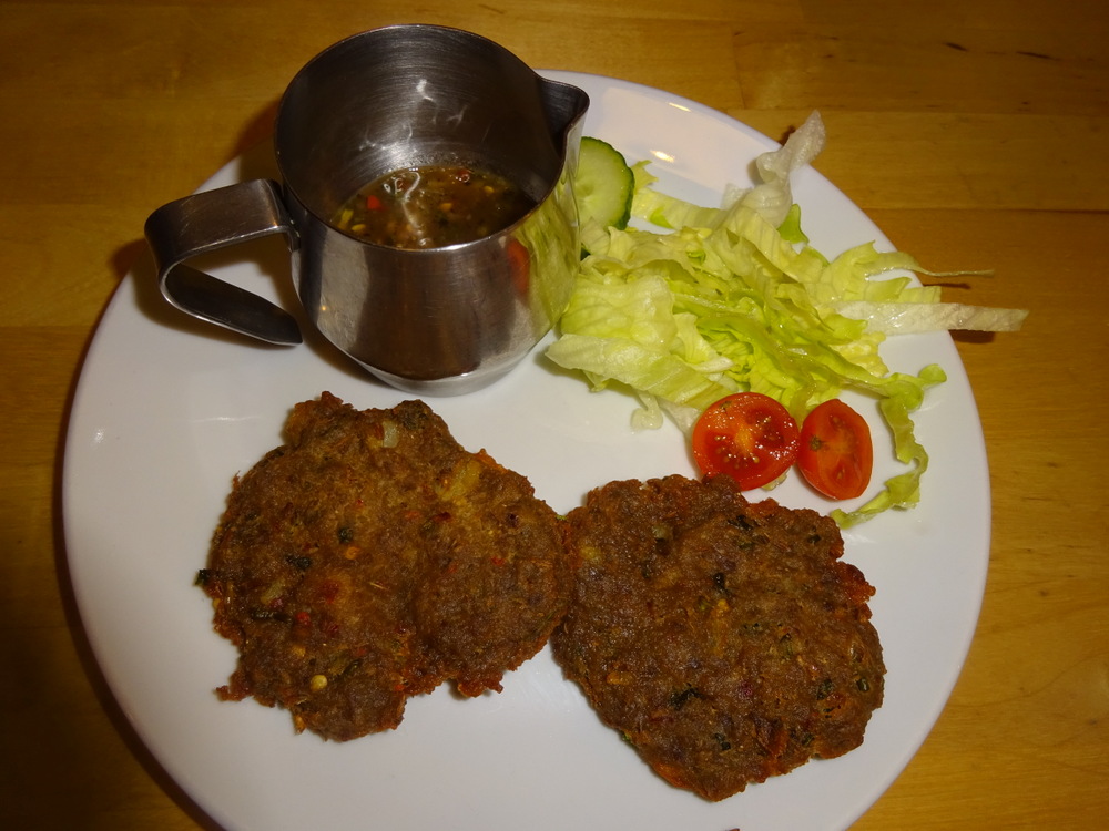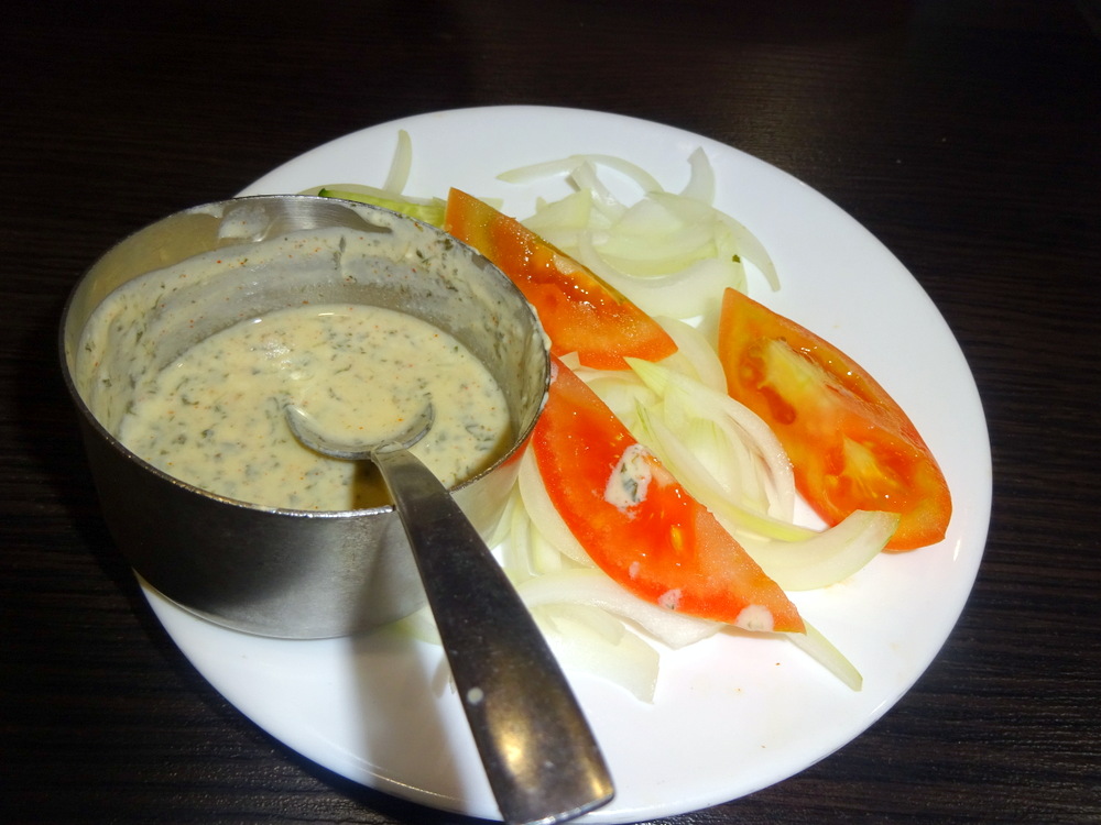 A Salad and Raita were brought to the table. It took some minutes before we were provided with the means of consuming these.