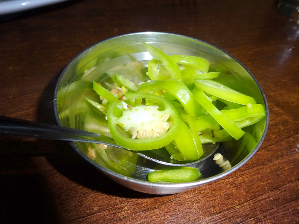 Only two bones were encountered, so a decent Meat Portion then. Somehow the Meat was Tender but firm. I encountered my first Cumin Seeds in weeks. There was the sense of Spice, Rocky offered more Chillies. In an instant, some slices of the Large Green Chillies were placed on the table. Now we had no excuse to complain about any lack of a – Kick, though I will state that the Seasoning was below that which makes the perfect – Methi Gosht. Still, it’s good to be home.
