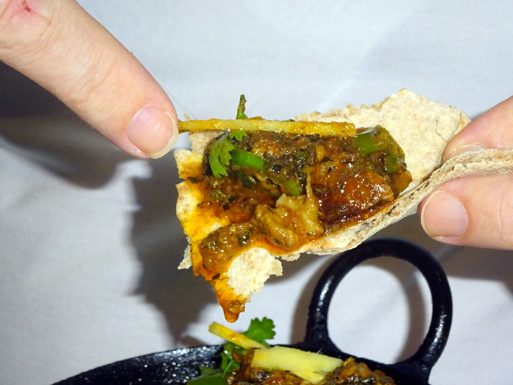 The Paratha seemed huge, it had girth too. On inspection it had the required Layering and was Flaky. This Paratha was well-fired compared to the majority I have encountered, slightly greasy to begin with, or was there a Butter finish? When I eat half a Paratha I think I am doing well. This was daunting.