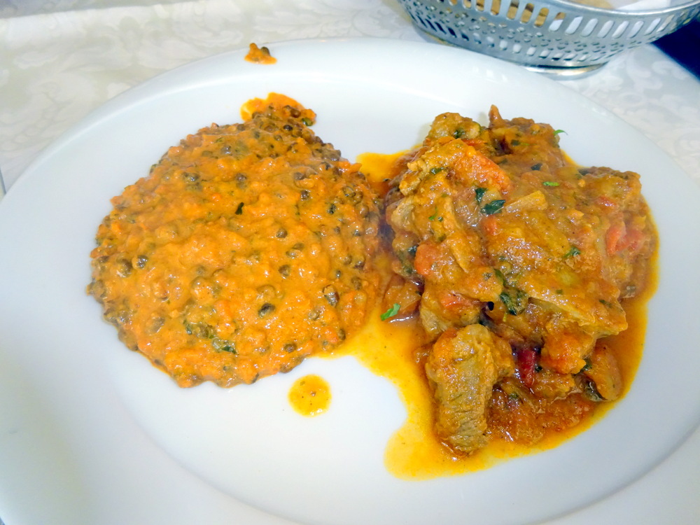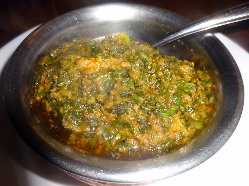 Three cone-shaped Poppadoms with the embedded Cumin Seeds were brought with three Dips. As Mein Host started to describe each of the Dips so I jumped in with – Tamarind. If he didn’t know that we knew our stuff, he did now.