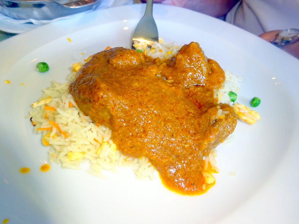 I was appalled. That such a Dish is on a Menu masquerading as – Curry – in any Restaurant is something I find it difficult to accept. Here there was no attempt at even pretending it was – Curry. This was simply Chicken in a Tomato Soup with Minimal Spice added. One could have bought a Jar of this in any supermarket.