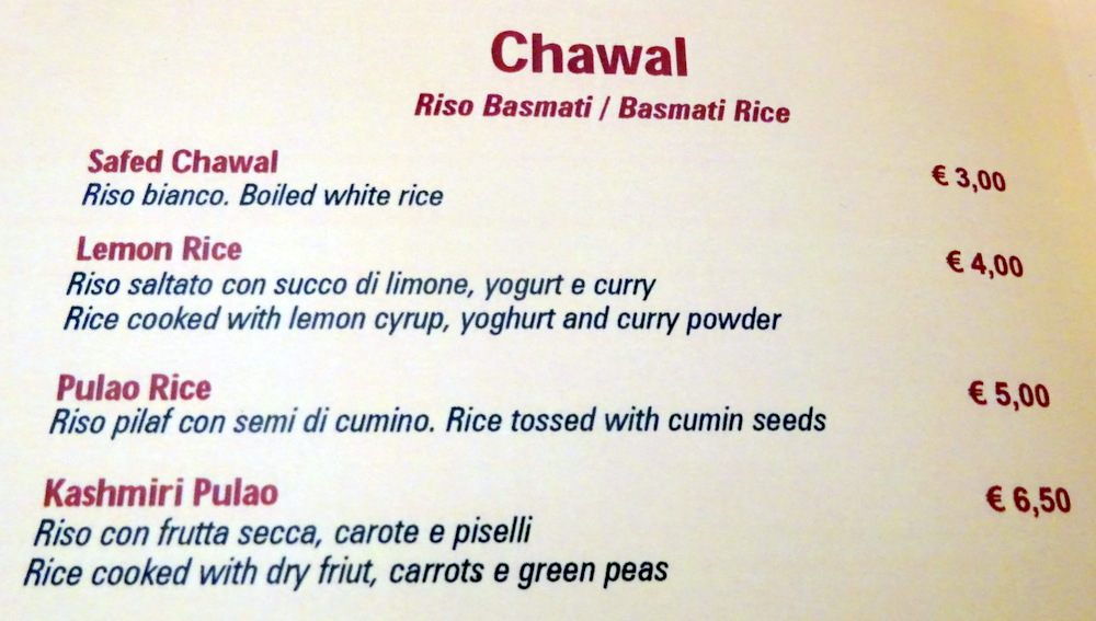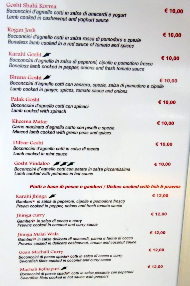 Five nights in Trieste was a good idea, but maybe not five days. On Friday we went to Koper (Slovenia) for the day, today it’s Udine, possibly Italia’s most northerly city. That four Curry Houses are located within what is defined as Udine made this an even more attractive day out. Two of the venues are well out of town, leaving Ristorante Indiano Taj Mahal (Viale Europa Unita, 161, 33100 Udine UD, Italia) located near the Train Station and Himalaya Indian Restaurant (Via Superiore, 75, 33100 Udine UD, Italia) on the western side of town.