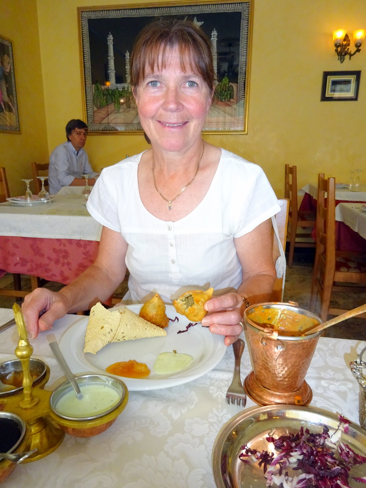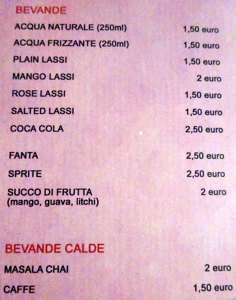 Udine is an hour from Trieste, longer allowing for the usual and inexplicable need for Italian trains to keep stopping. It was a few blocks to Taj Mahal where a staff member was found sitting outside. The photo taken I glanced indoors, there was no posted Menu, nothing to make me want to go in to these empty premises. Research had made me favour Himalaya before my arrival, a trump card.