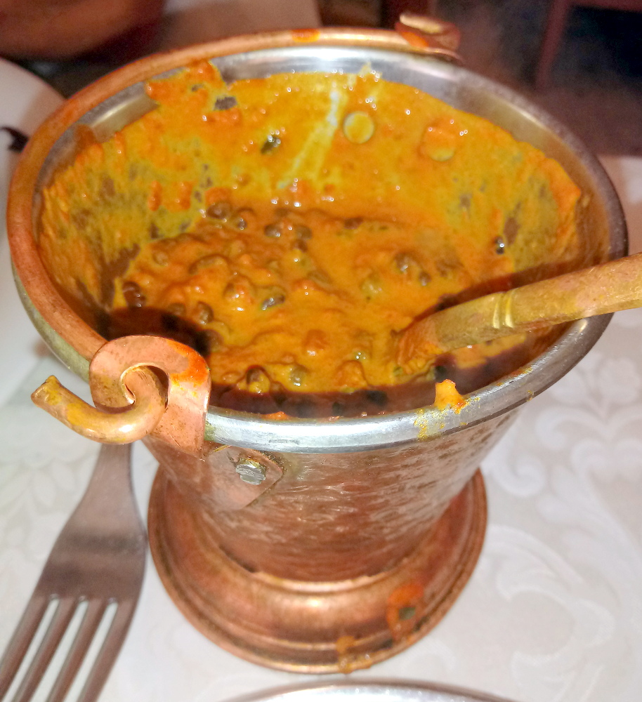 When the food arrived, the disparity in the size of the Curry Pots made me wonder. However, one Curry had the required Minimal Masala, the other was decidedly – Soupy.