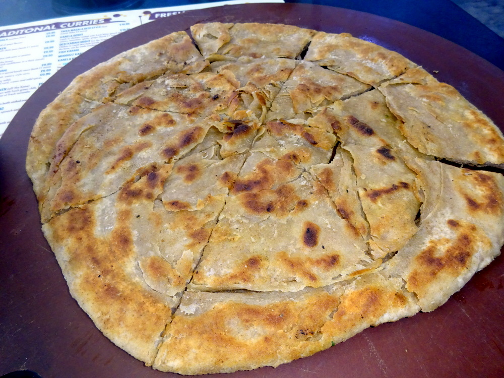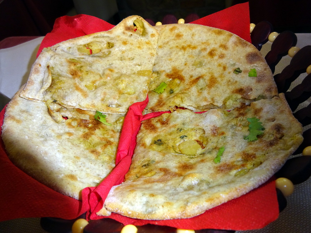 The Jeera Rice was just enough to share and had plenty of Jeera/Cumin. The Aloo Parantha was remarkably – Thin – for something that was meant to be stuffed. Served in Quarters, (why?) it was an OK size, nowhere near as large as served in the UK. It was already going Crispy. Thin & Crispy, remind you of anything?