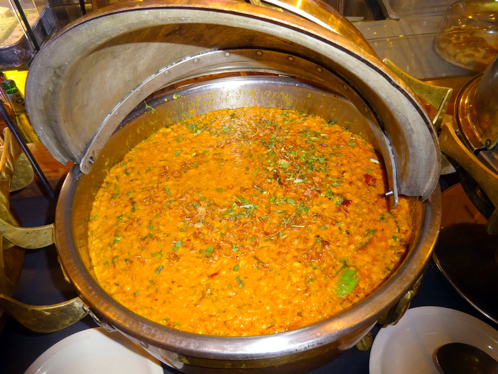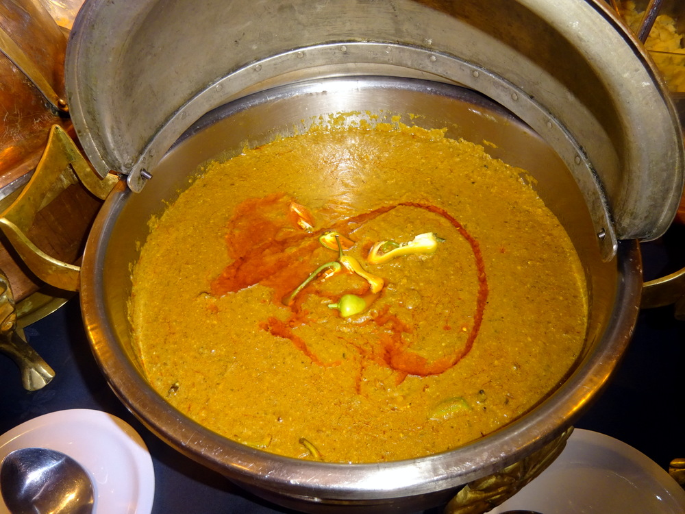 When Spinach is served with Cream I always ask why, it’s too Creamy. When Saag/Palak is simply a blend of Green Herbs with Spinach dominating, I question the bitterness… unless it’s Methi of course. By this time I had realised why the Lamb Biryani was at the end of the line of tureens. Had it been at start, people would have picked out the Lamb leaving Rice, else they would have taken Lamb and Rice when Rice is really all they wanted. This is my theory. By having the Bread at the start and the Biryani at the end, it could only be taken if one’s plate had room. My plate did, and I was overdue some Rice/Bread. Finally a – Dry Curry – of sorts. Whole Green Chillies were embedded, now we’re talking. This was my first Biryani experience at The Village, this was seriously – Tasty Rice.