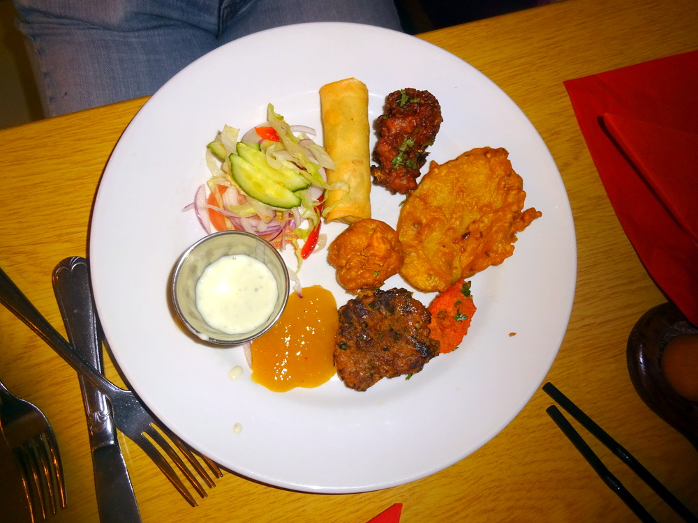The Patties were not Chapli Kebabs, or were they a variation? Either way, these were still the most interesting and tasty for Hector. The Samosa was – Light, Crispy and Fresh. The Vegetable, Aubergine and Mushroom Pakoras were all Satisfactory, one could easily have filled the plate with these, or anything else for that matter. The Chicken Buffalo Wing in Batter had to be sampled, it was unsurprisingly no more than – Chicken in a Spicy Batter. I even took some Dates from the artistically arranged platter.