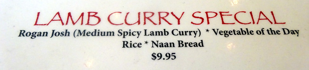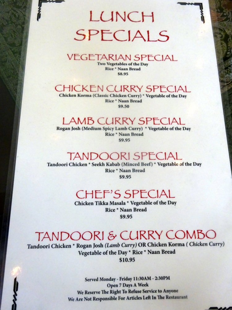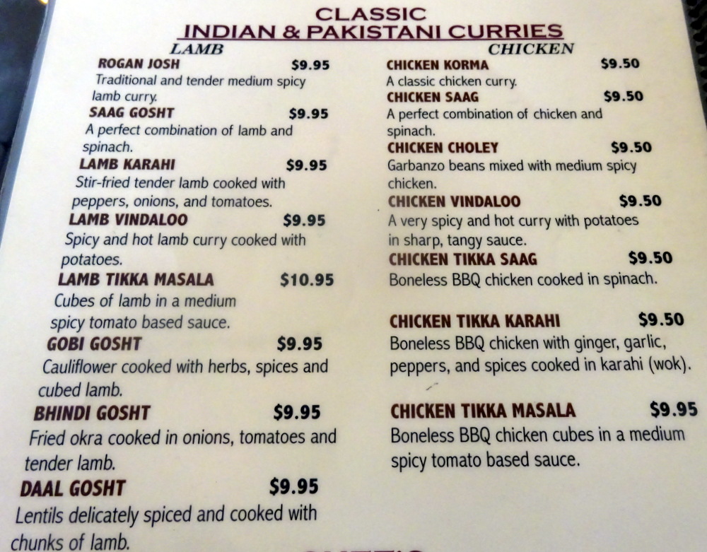 Marg had Chicken Biryani, Aloo Chana and Lamb Bhuna. I was too busy matching photos to notes to ask her about her selection. So it goes.