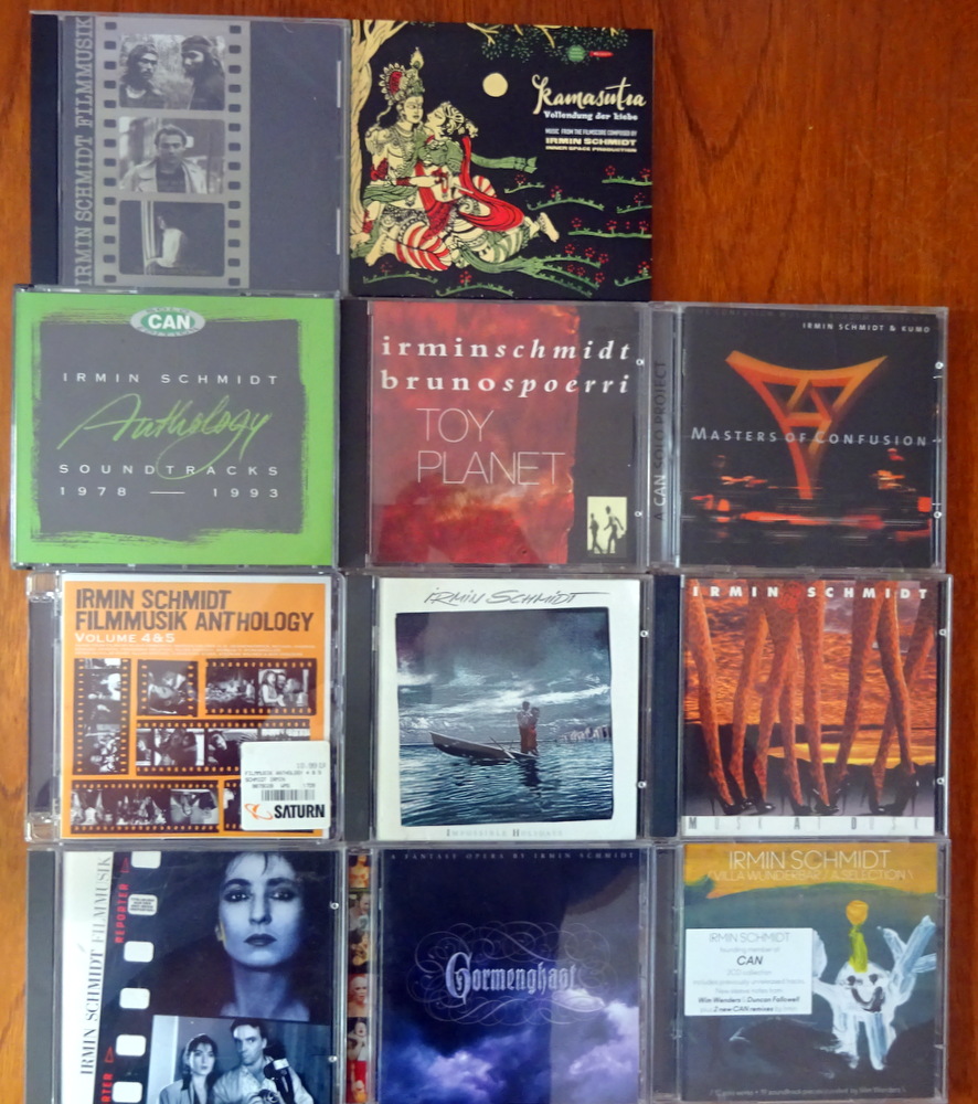 The first solo Irmin Schmidt album was Filmmusik (1980) which I bought on vinyl on the release date. This has never appeared on CD. Howard had a