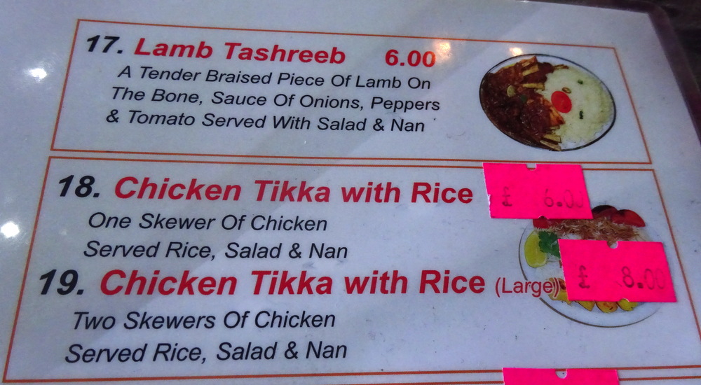 Arriving around 19.00 this evening, I was therefore disappointed to establish that Taj Mahal is only a Takeaway. A bench, which I and other customers used whilst we waited for our Orders, did have one table at the far end. However, with packaging piled up, I doubt if anyone sits here on a regular basis. Cafe Reeshah this was not.