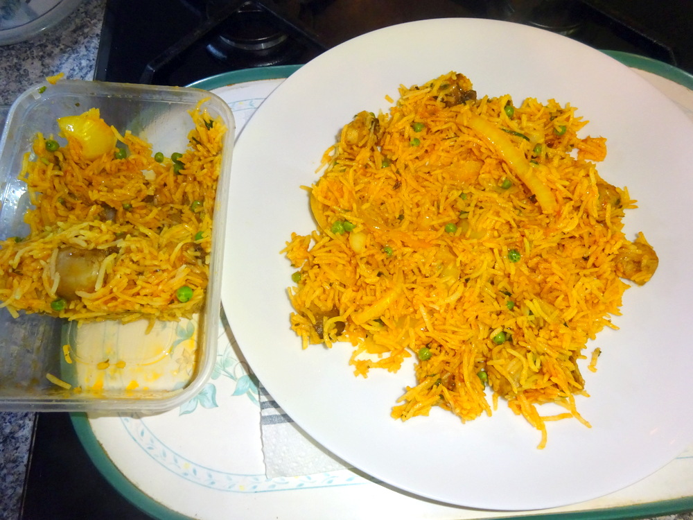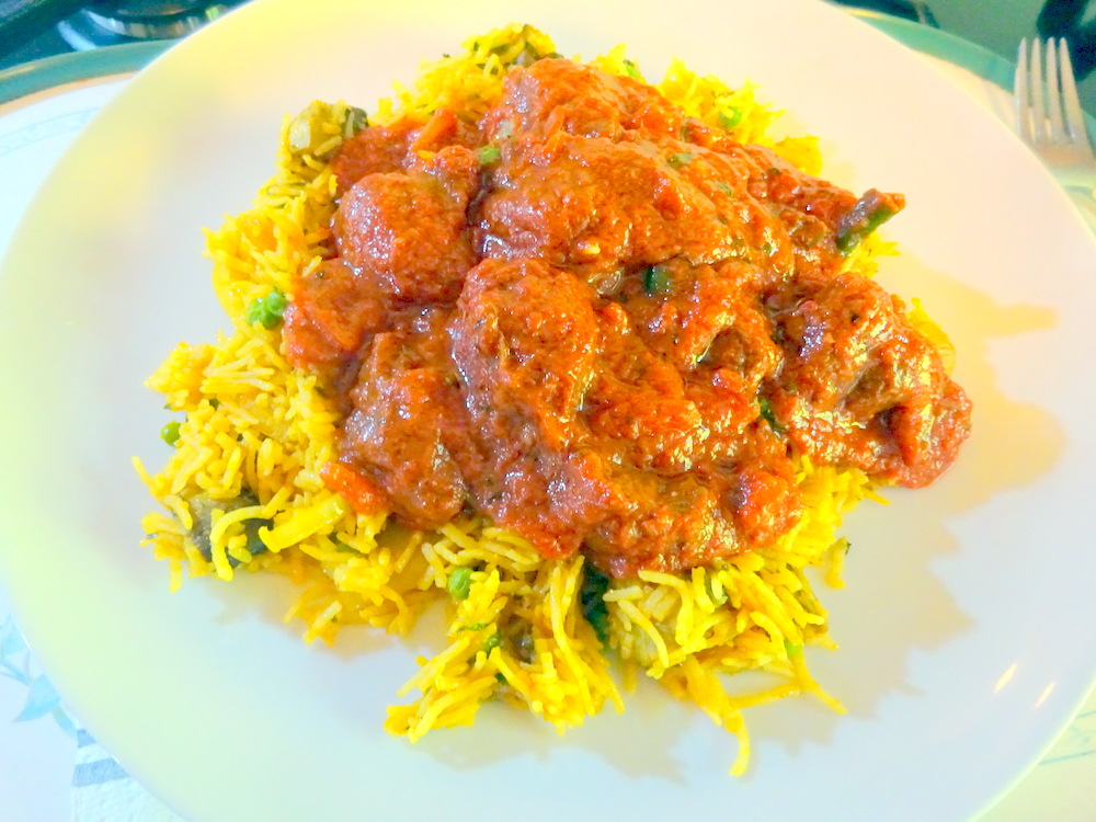 Taking a plateful of Rice, I still had enough for later, this could easily have done two. I counted out ten pieces of Meat, then took enough Masala to create an elegant sufficiency.