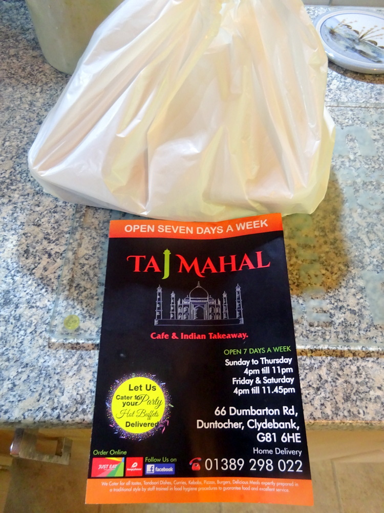 If Taj Mahal is on one’s doorstep then it’s fine. New Kismet Tandoori (Glasgow) remains my favoured Takeaway in the Clydebank area. Mr. Tasty in Whitecrook is the only Clydebank Takeaway I have not visited. I note they won an Award recently, perhaps next time.