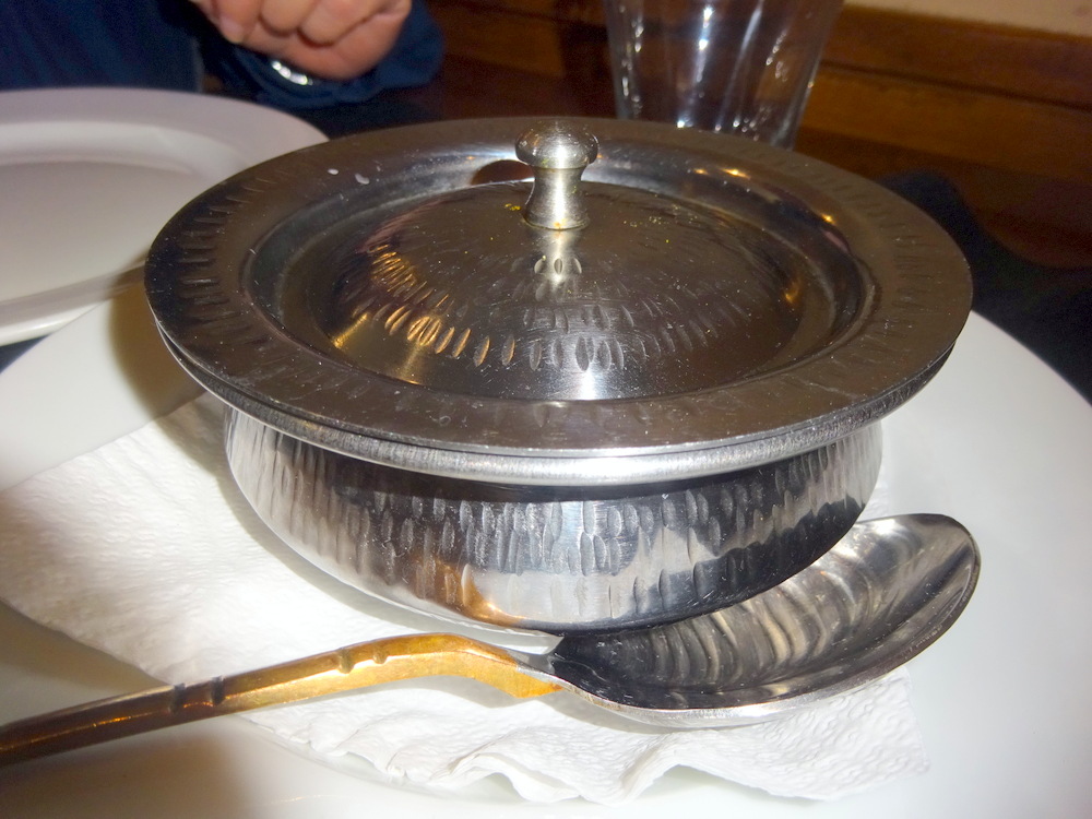 Nigel could see how many Chops were left, he took a couple more, he’s a well mannered Chap. The Mirror Achari Karahi may have made it halfway towards us before it was emptied. John G. on my immediate right had long since stopped eating. He’ll be back soon. John G. found a second wind. Steve made an attempt at emptying – The Big Bucket. John S. may well add his own comments below.
