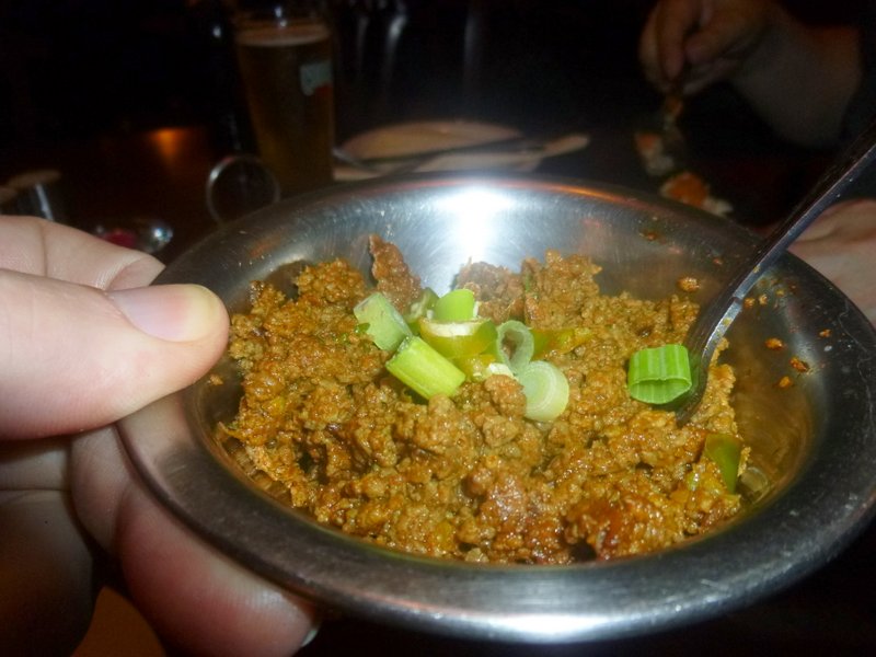 The place was empty. I tried to take a table for four at the window but was shown to a smaller table in the far corner. The Menu wasn’t vast but there was more than enough choice for Hector. Karelay Gosht and an Aloo Paratha was the order. However the Waiter was back moments later to inform me that – There’s no Karelay left.