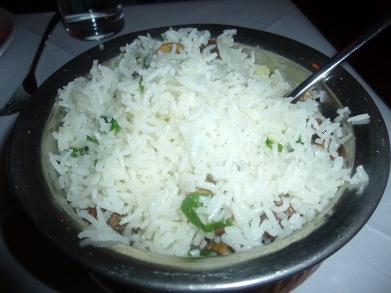 Various Nan of a decent size and Roti were set before us. No Chapattis were available but the Roti were like Big Chapattis, no sign of crispiness. We had ordered four, two came, followed by a third when we realised Howard and Tracey had none. It was never touched. Three portions of Basmati Rice were ordered, more than enough for the six who were sharing.