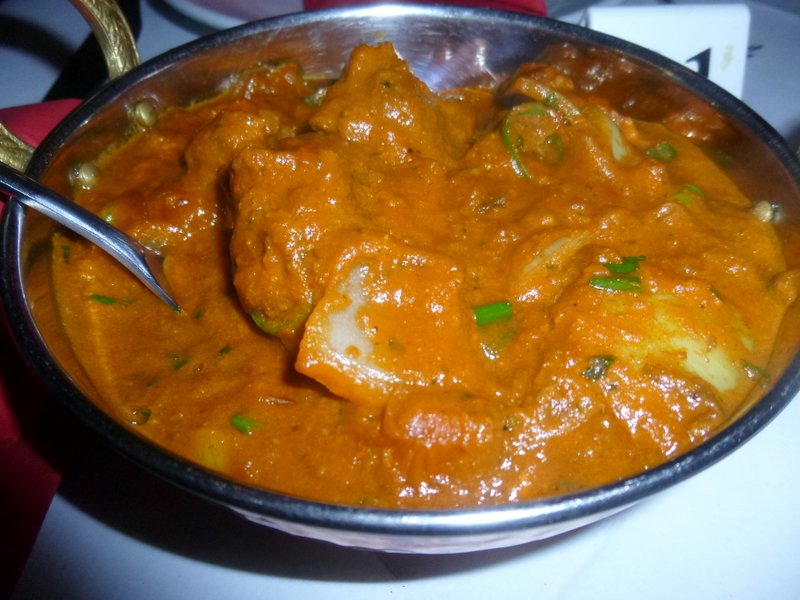 Marg knew she was beaten before she started, even when she stopped, she started again. A Boti Kebab followed by the Half-Kilo. She ate on and loved it. Juliet was tucking into the Peshwari Chicken, Onion may have featured in this Dish, again from my listening in. If so, the only Dish to do so.