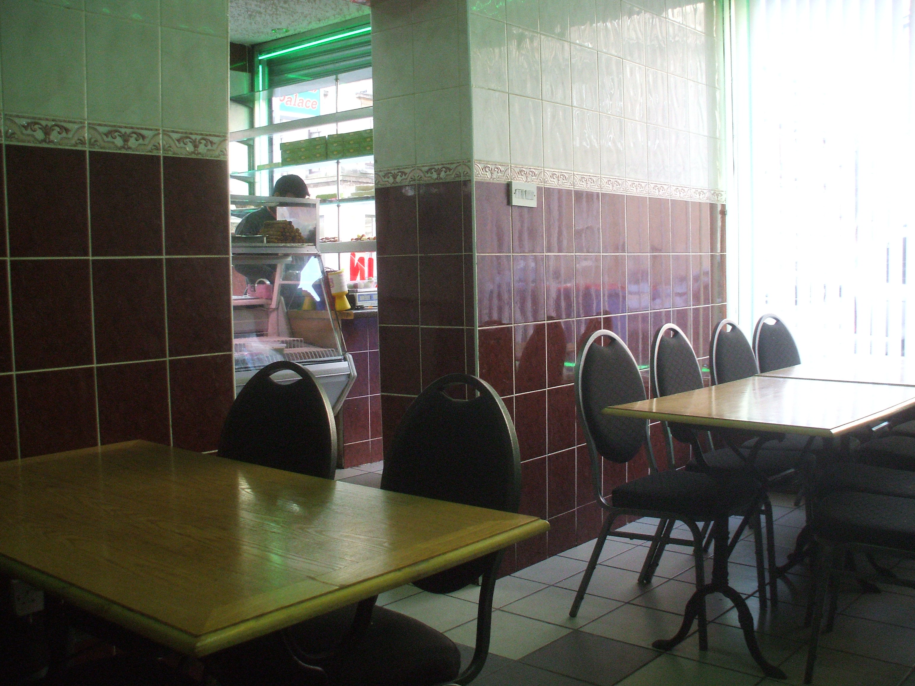 With pillars and a raised mezzanine the layout of the Pakistani Café is quite attractive. What was left over from the previous incarnation as a bar I know not. A comfortable table for two was a difficult choice, we settled for a table for four at the window. We had been offered upstairs where the only other customers were located. From our perspective they appeared to be sitting on cushions. Fearing we might not be able to stand up again we stayed where we had selected. A large table had church pews. There was an interesting array of tables and hidden locations.