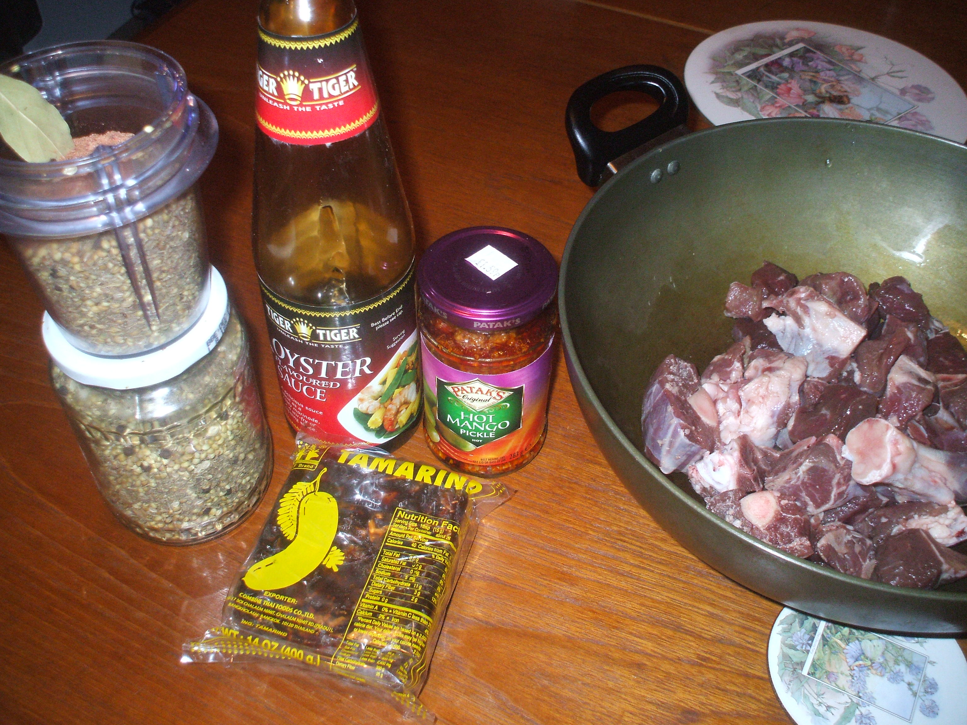 There was an order for Mo Mo which I am assured was Mince Lamb Dumplings. We shall never know because after an age three plates of Starters were brought: a Mixed Vegetable Platter, a bowl of Spicy (Tandoori?) Beef strips and what looked like a Seekh Kebab. There was no Mo Mo. There was also an apology for the late arrival and a declaration that the Starters would be free. As I had not ordered a Starter I was paying little attention. Apparently Robin had not either but he took care of most of the Vegetable Platter.