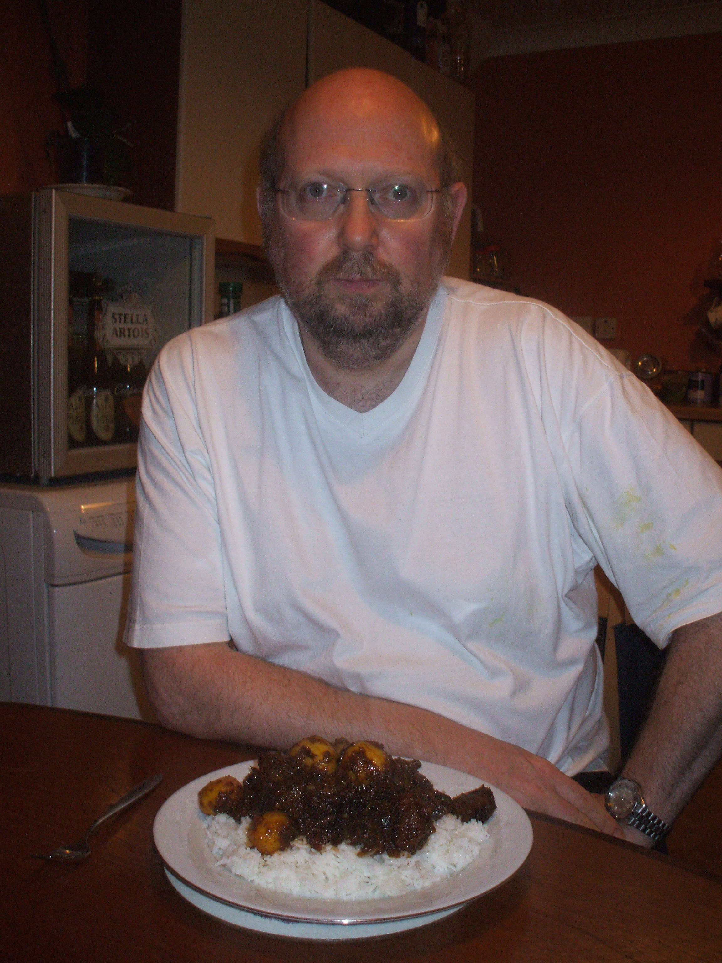 The Lamb Karahi looked like a stew in many ways, but it was in a very rich Masala and was distinctly oily. It was 11.30, the taste buds had hardly woken up but what I have described previously as – The old fashioned Curry taste – was coming through. Hector was in his element.