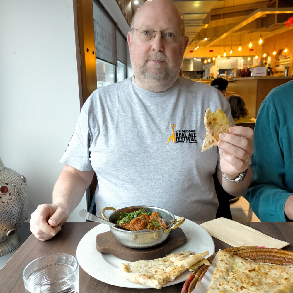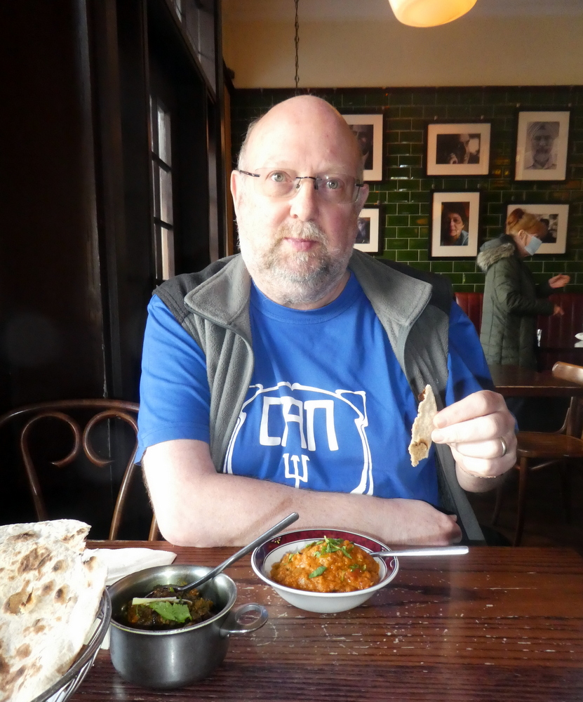 There’s Bier and Curry to be had in Edinburgh, needs must. Kebab Mahal (7 Nicolson Square, Edinburgh EH8 9BH) was chosen as the venue for lunch before meeting Curryspondent Neil for ale indoors. Arriving at 12.20, two chaps were sat at the table I have selected on previous visits. This must be – the spot. Taking in my new viewpoint/perspective, I waited for the Son of Mr. Khan to serve me. Charlie, who claimed to be from Track & Trace (again – no badge, no uniform) kept him engaged for what felt like an age. Hector needed his Curry.