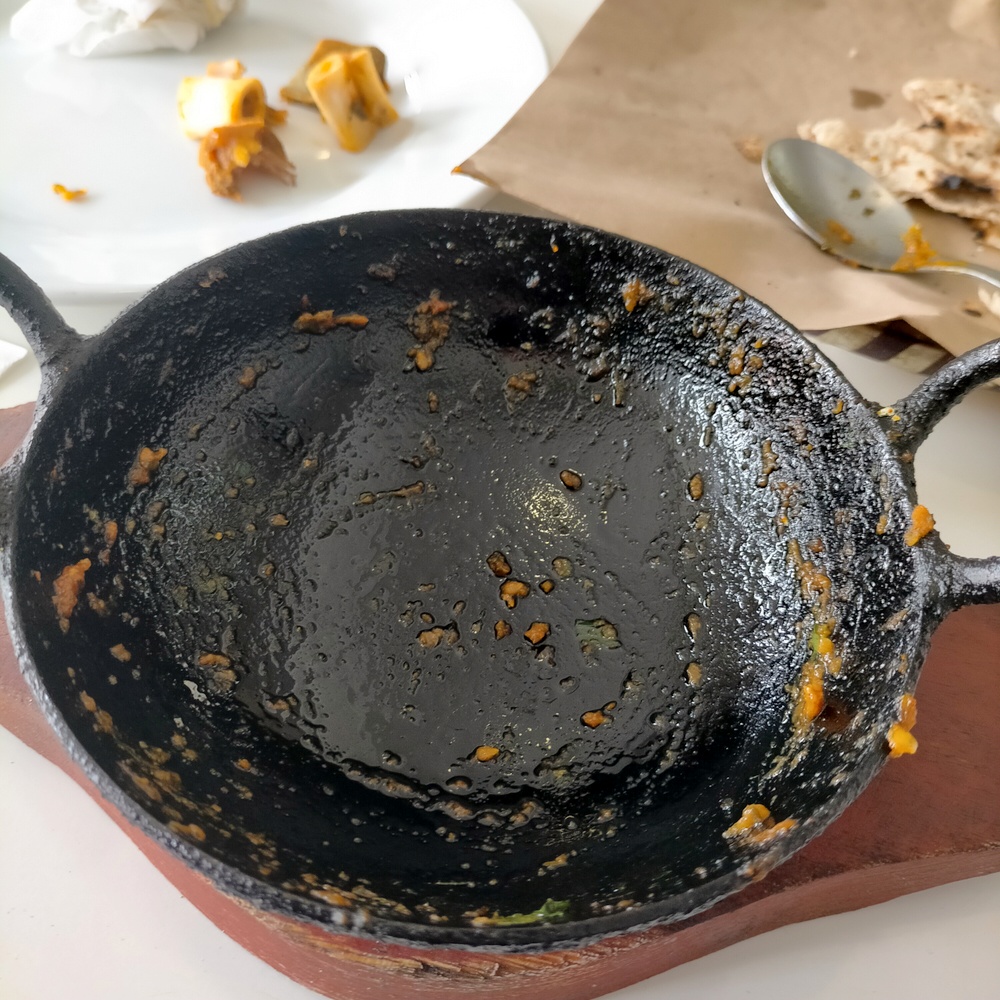 Every Curry I have had at Kebab Mahal has had a level of Seasoning below the Hector idyll. In time, I noted the Shorva was lacking in punch, the Seasoning was in the Meat. Umami – the Meat here was punching above its weight for a standard Curry. The Spice Level could be described as – Moderate – at best. Maybe in future visits I should ask for more Spice and Seasoning. Given the rule that one eats what is put in front of one, there was no reason to be over critical. The Shorva-Rice combination, the amazingly Tender Meat, the Tomatoes, all excellent. We’re not using tinned Mushrooms at Kebab Mahal, are we?