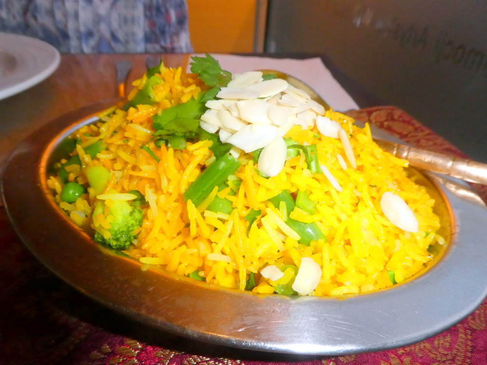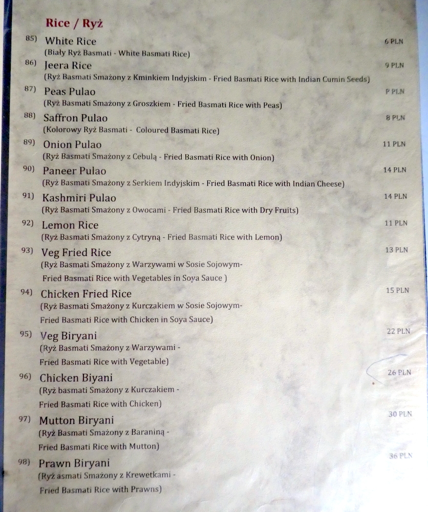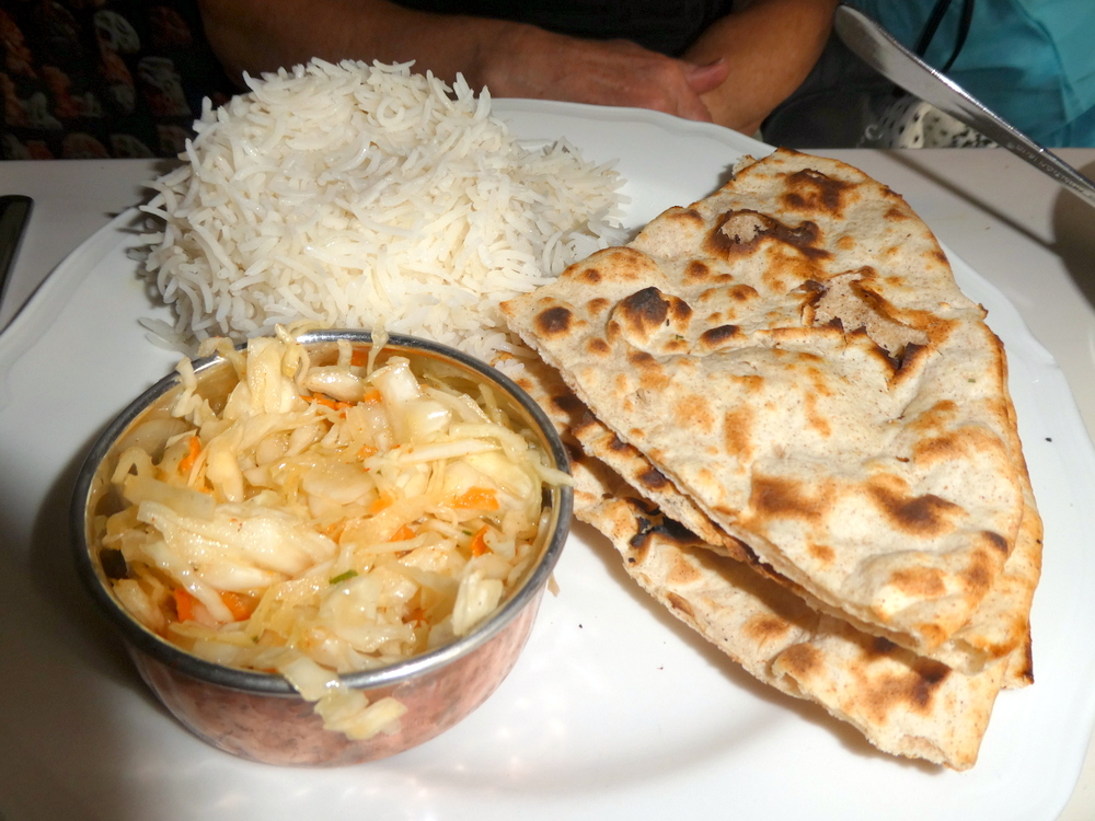 The majority of the Lamb was – melt in the mouth, a few pieces required more chewing. At this price, it all goes in. With the absence of Chillies, the Spice Level was well within Marg’s level of tolerance, still more Spicy than the majority of Dishes had in Europe recently. Tomato Seeds stood out in the Masala, one wonders how much, if any, Onion was present.