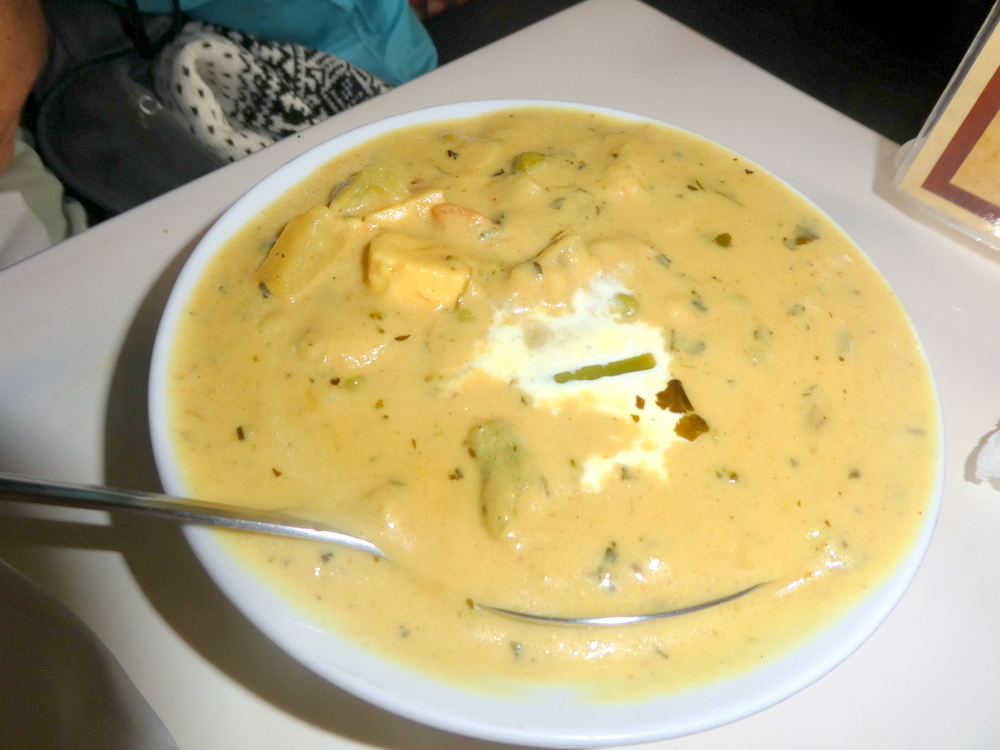 I was more adventurous with the sucky bones, even some marrow. I still prefer the small pieces of meat with the peppery sauce and the ginger strips, – and the Roti. An excellent meal.