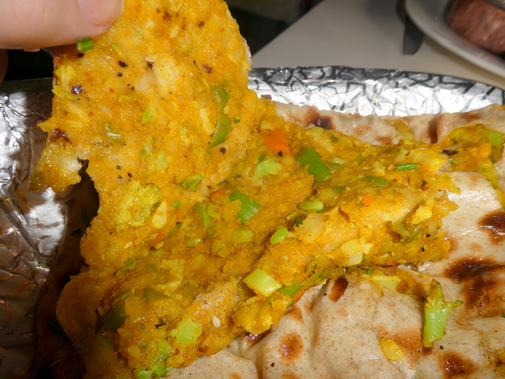 The Breads at DumPukht are cooked in the Pizza oven. The Rogni Nan had no perforations and so had risen slightly. A sensible size, still it would not be finished. The Roti looked huge in comparison, Marg prefers the – plainness – of a Roti/Chapatti.