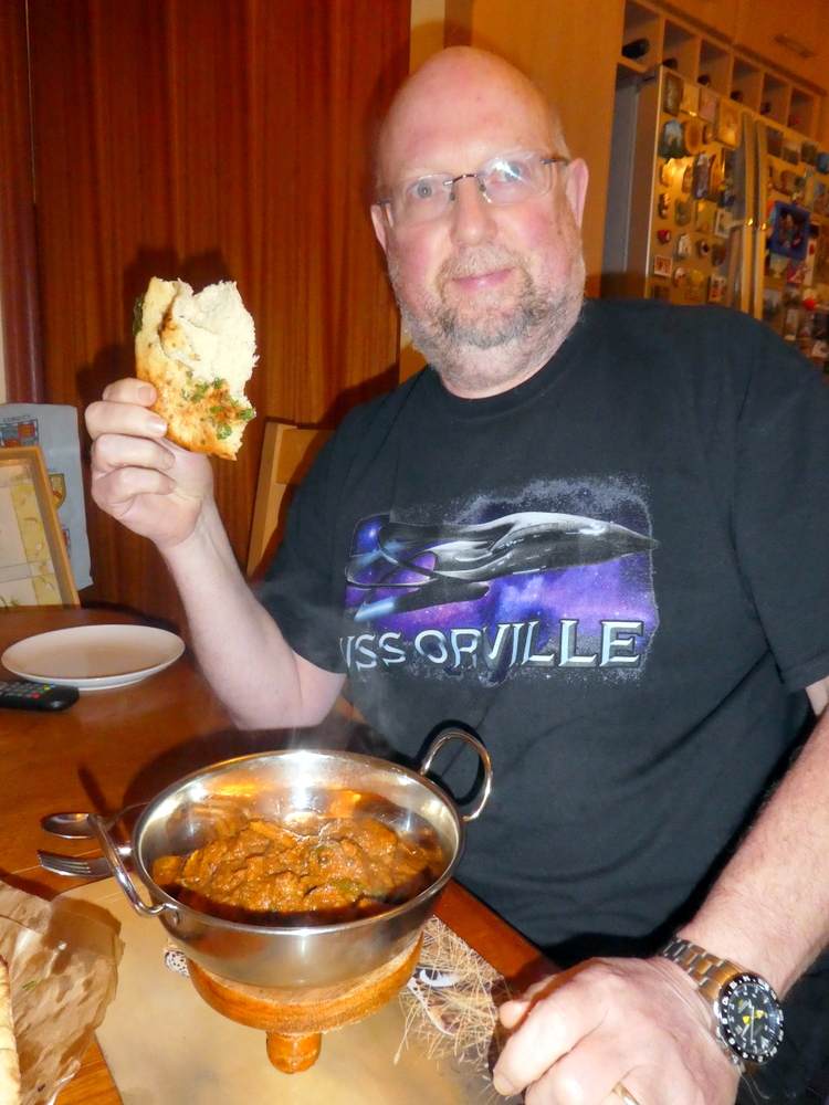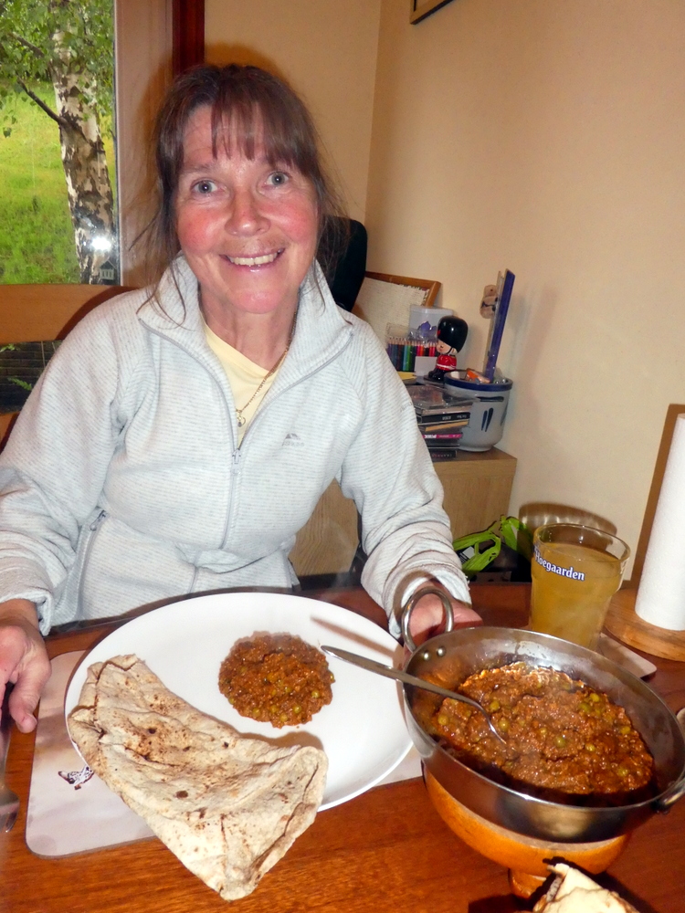 A snack, however Hector had other things planned for today, the leftovers from last Friday’s home-cooked Karahi Gosht. There was still a large portion left, and when the remnants of the Aloo Gobi went in, quite a meal. But Hector knows who is calling at precisely 16.15 and why. Pete shall have a Takeaway!