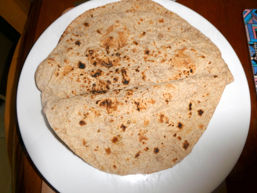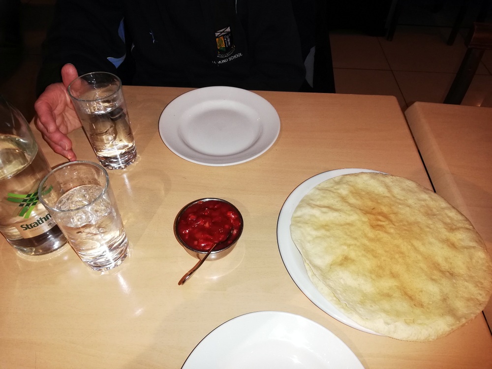 The Naan was a good size, well fired around the edges. The inserted sliced Green Chillies had prevented the Naan rising in the middle. Still, at last I had a substantial and fresh Naan, way better than my attempt last Thursday. Curryspondent Bill, who retains his connections with Punjabi Ibrox, has since told me to use self-raising flour.