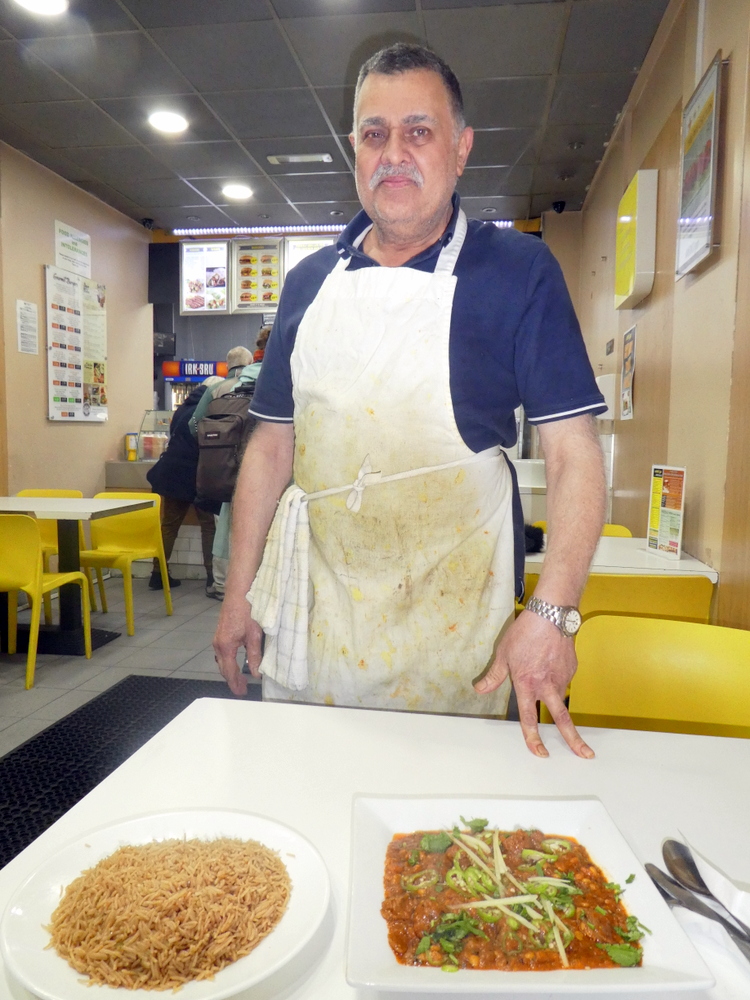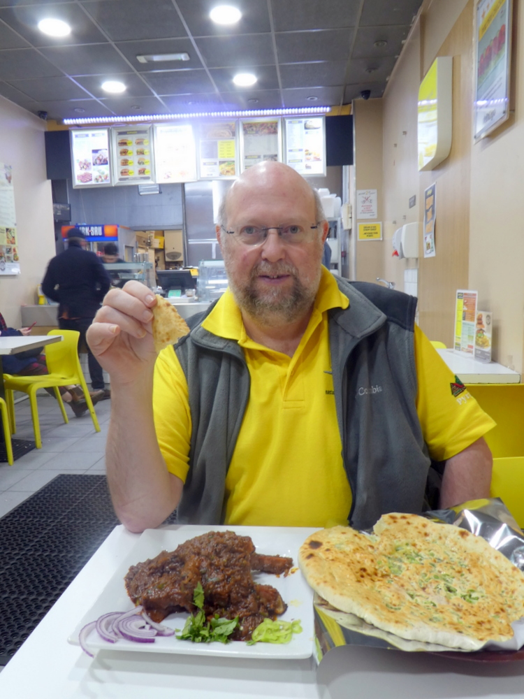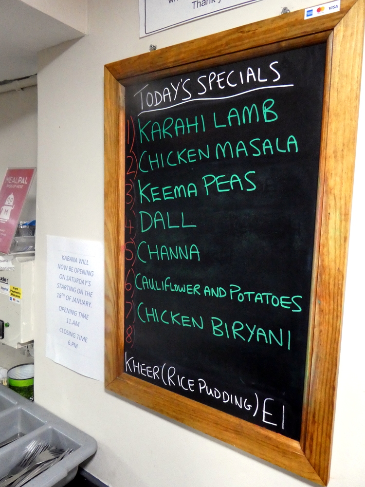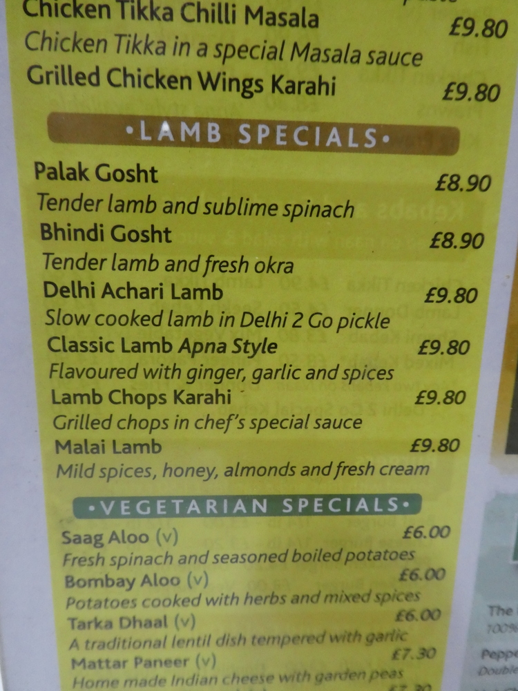 Arriving before 13.00, we were the first customers of the day. Taste of Pakistan is a simple restaurant seating twenty six, the décor was unpretentious but a step up perhaps from being a Curry Cafe. Mein Host let us choose our seats, I took the corner from where I could survey all. Marg was keen to find out which football match was on the tv. Tottingham (sic) beat Man City, unexpected, but they do have Portugal’s second most famous citizen as their manager.