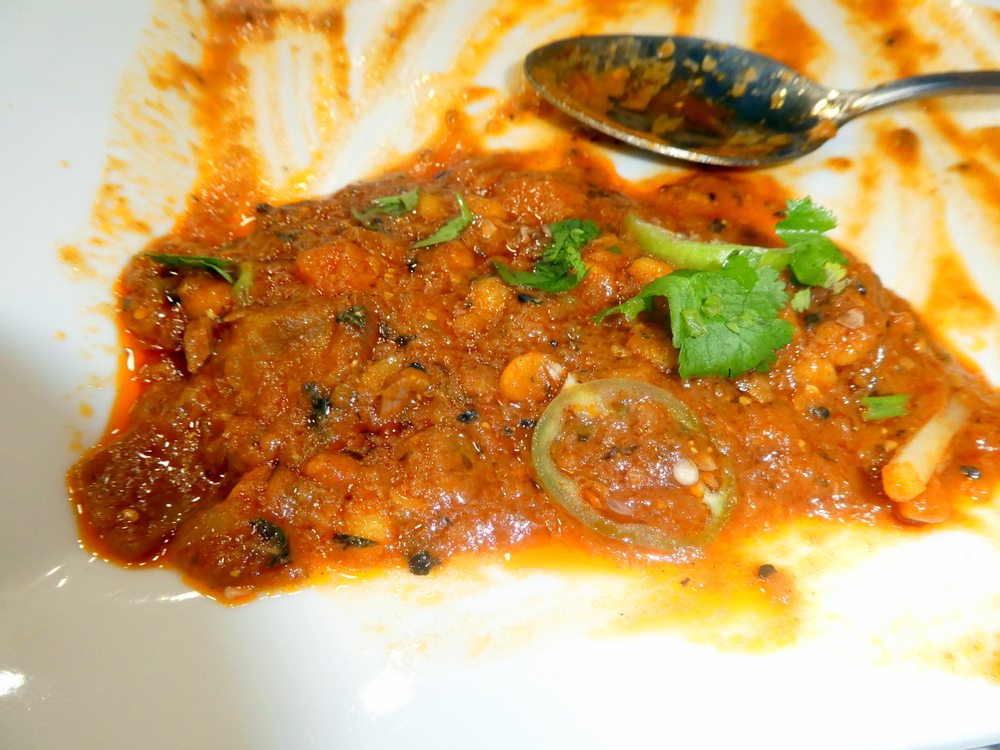 Large pieces of cooked Tomato permeated the Masala. The Meat was mostly – Soft – and gave off the distinctive Mutton Flavour that many a Curry has not. The Spice Level was not demanding, indeed, such was the level of pleasure already being enjoyed, why try to improve upon perfection? I found more Capsicum, so not quite perfect then. The slivers were rounded up and piled in the karahi, they were not interfering with my enjoyment of this wonderful meal.