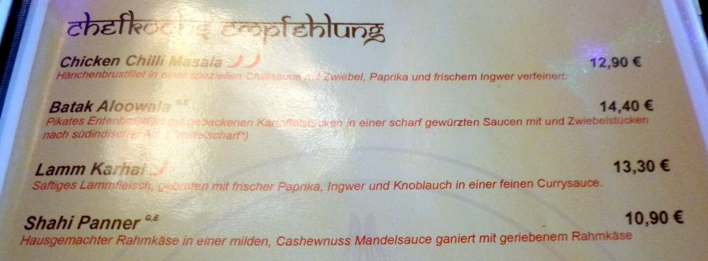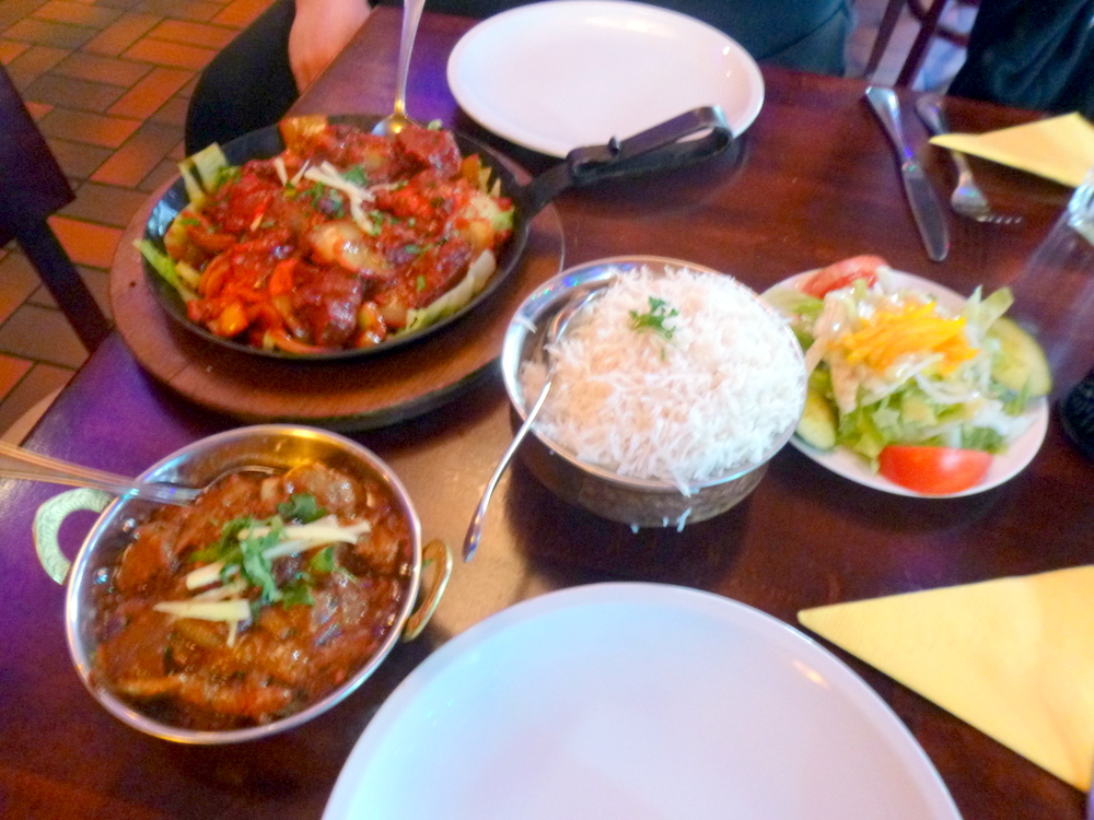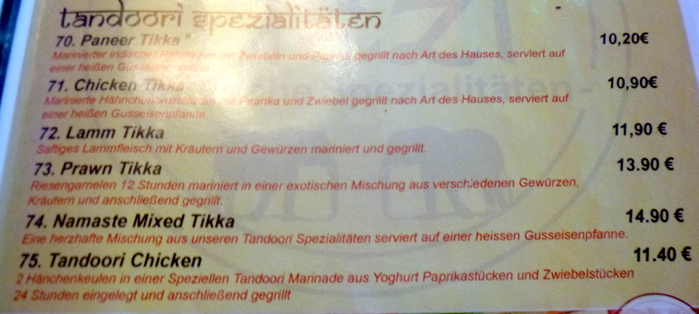 One assumes this was conceived to share. Over the years we have had enjoyed many of the components in this – Platter. Today was the first time it has appeared in its own right in Curry-Heute. Lamb Chops, Skewered Lamb (Shish Kebap), Tandoori Chicken, Chicken Chat (Wings) and Lamb Seekh Kebab covered the unusually large plate, a – Platter – indeed.