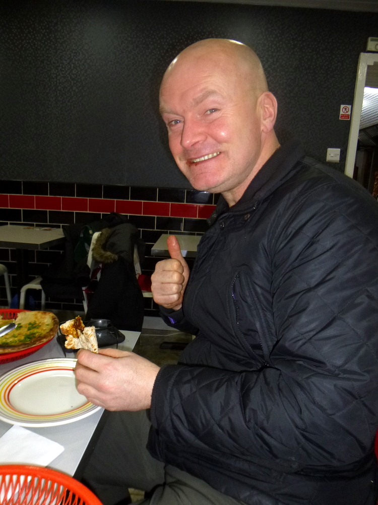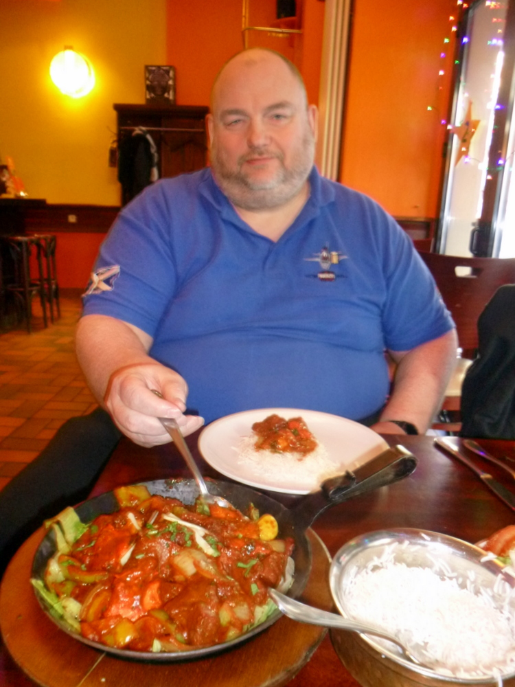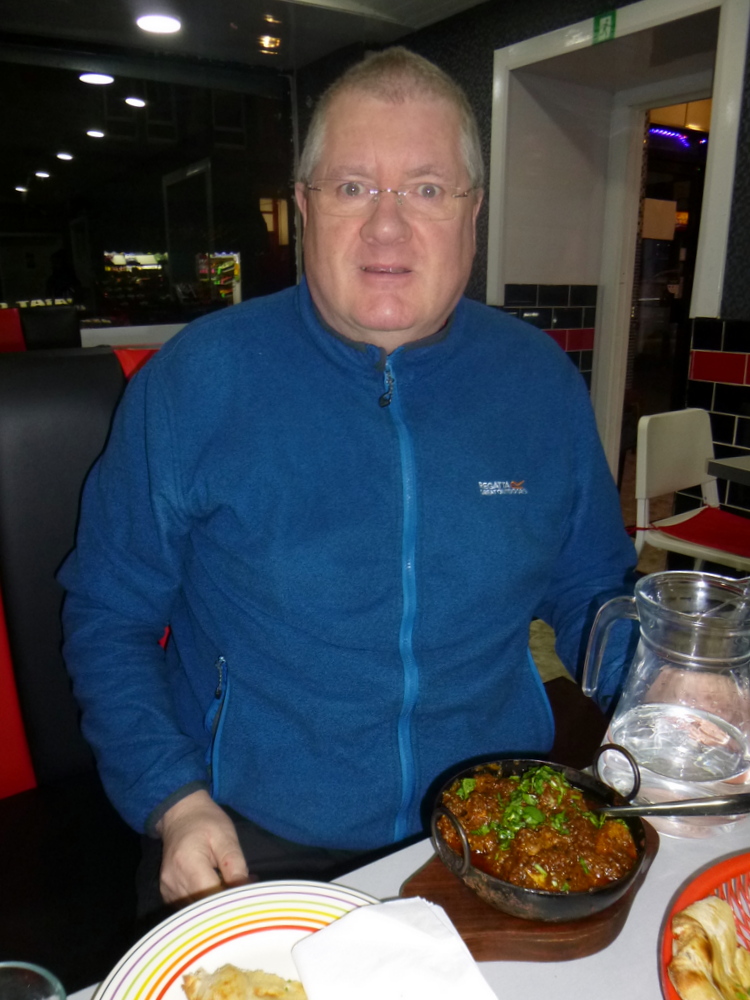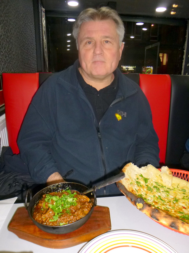 A Curry Sauce accompanied, from – The Big Pot – if Yadgar have such a thing. With Chapattis in hand, John tucked into his Feast. I noted his comments as he ate: