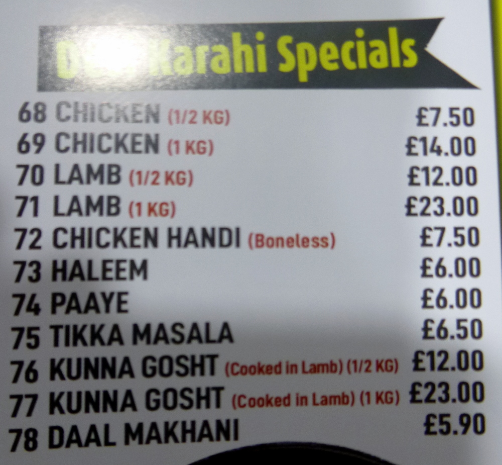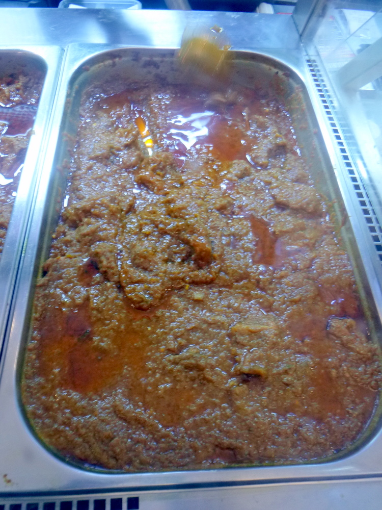 John decided he was up for this, a 14.00 rendezvous was agreed. I arrived early, no Naveed, he must have a day off sometime. It was the new chap who was behind the counter. He must be well established if he was left to run the show. I took photos of the Dishes on display, there at the back was Aloo Gobi! The Chapli Kebabs were piled up, this, hopefully, these, I had to have also.
