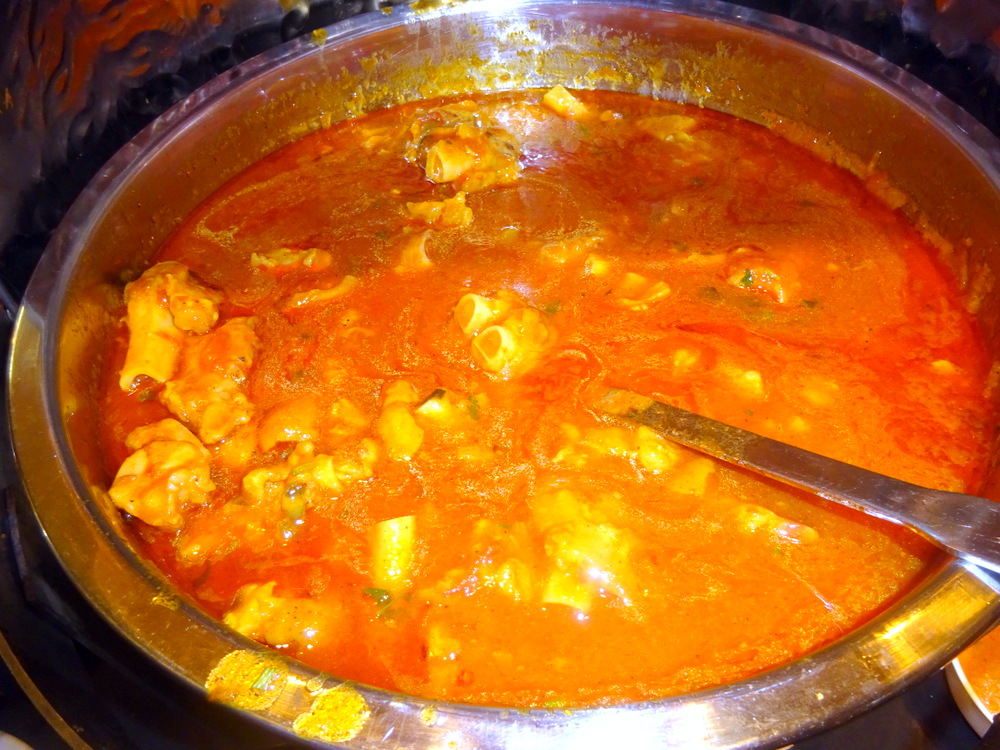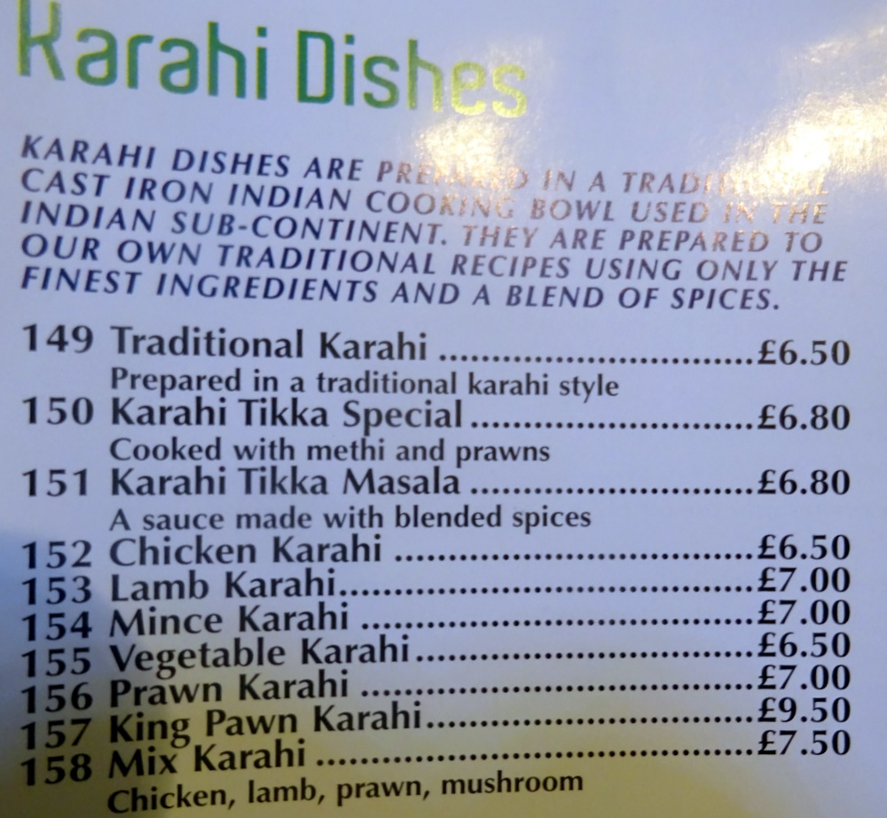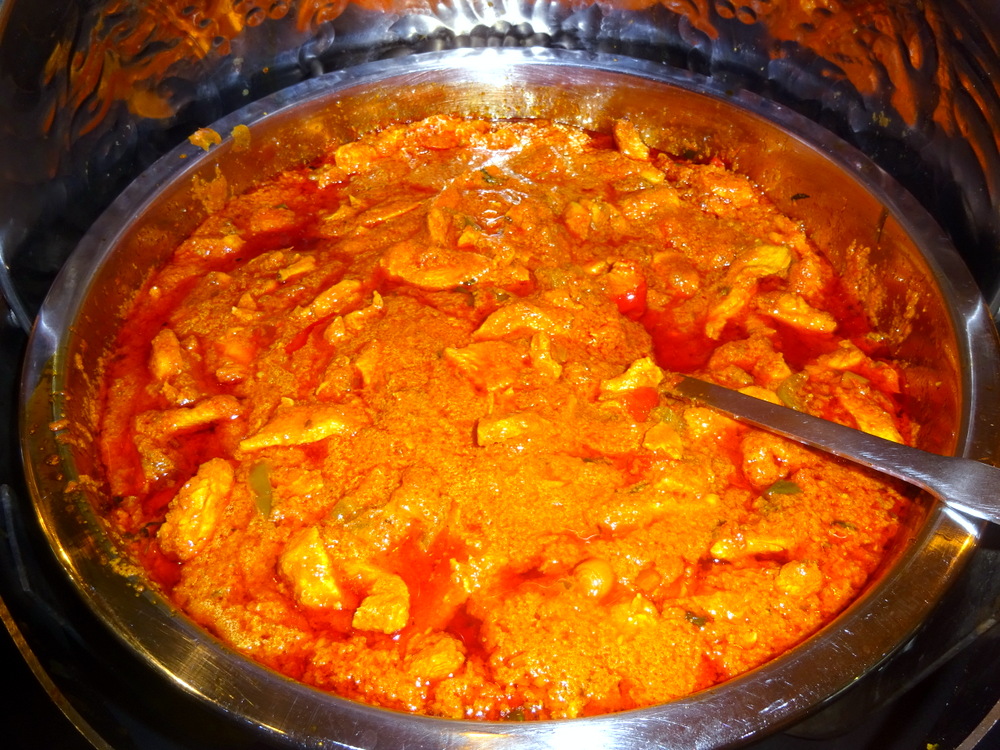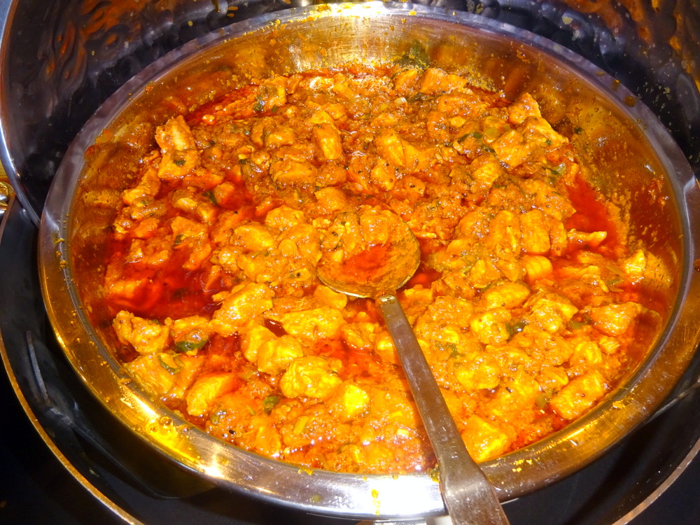 Topped with Fresh Coriander and slices of Large Green Chillies, this was the proverbial – Bee’s Knees. The Potato was visible, large pieces. There was definitely enough Lamb here also. Mags had a – Sucky Bone – there were no Bones in my karahi. The Masala was an elegant sufficiency, enough, suitably – Thick – Bhuna-style indeed.