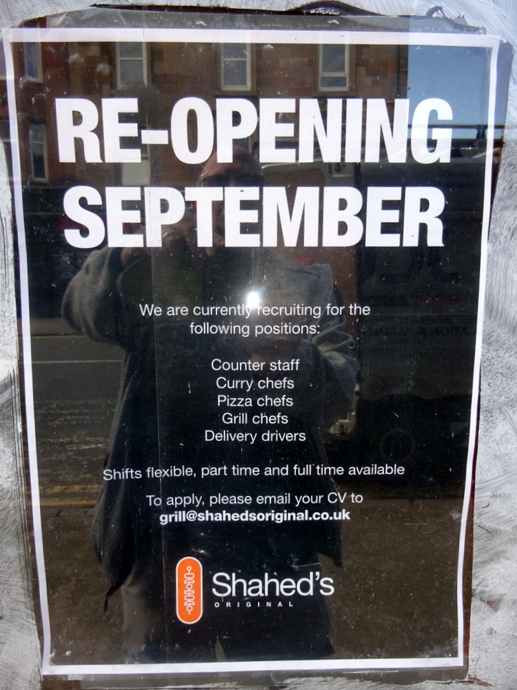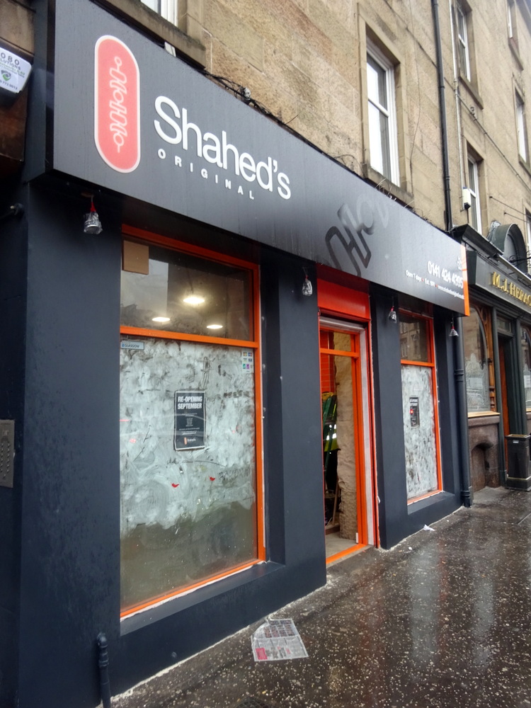 Shahed’s Original (712 Pollokshaws Rd, Glasgow G41 2AD) as they now brand themselves. The renovations are well underway; there should be at least a bench at which to sit to enjoy their Fayre, from sometime in September. If it remains only a Takeaway, then Hector will continue to pass them by, there being no point in visiting if there is nowhere to sit.