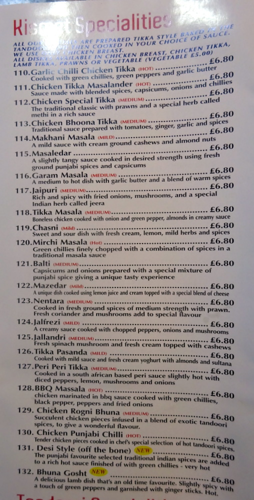 £42.40. I still cannot work out what Mags and I paid for our Aloo Gosht, somewhere between £6.00 and £7.00. Abbas said a – card machine – is due to arrive next week.