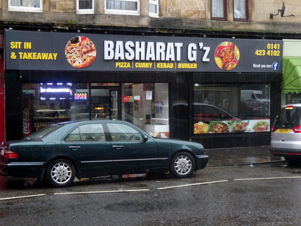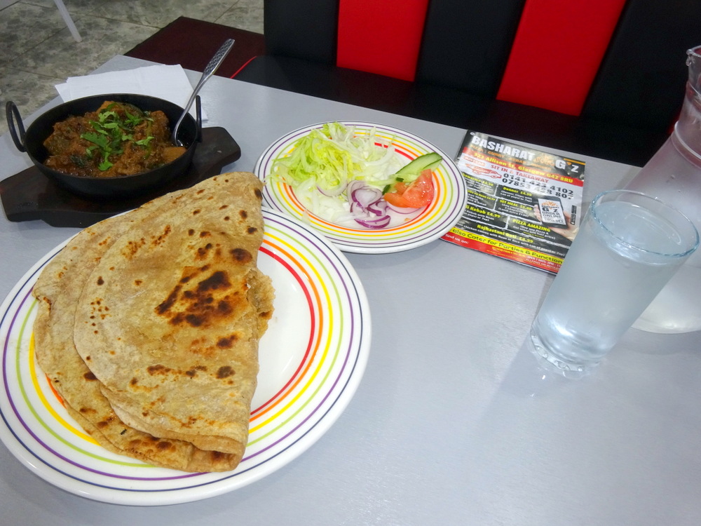 As soon as John heard about the wonder that is the Lamb Desi Karahi as served at Basharat G’z (223-225 Allison Street, Glasgow, G42 8RU), it was a matter of how soon could we go. Dr. Stan and Mags were included, taking us back to the halcyon days of Saturday afternoon Curry. Yet another disgustingly wet day in Glasgow, John would be late for the 16.30 rendezvous. The remaining three headed from the Allison Arms in good time, but were a few minutes late having engaged Zahid at