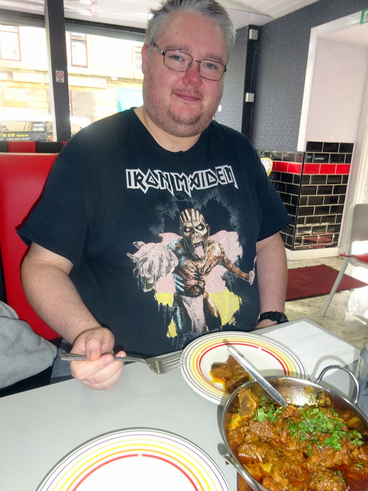 I went to the door to get a phone signal, such is the density of the tenements in this part of Glasgow, wi-fi is required. Dr. Stan had just raised the question of a trip to Berlin for the Weihnachtsmarkt in December. More Berlin Curry in 2019, Mmmm. Noor announced that he had been reading my reviews and was taken by the detail. More on this matter below. Noor also had a Pizza in his hand, about to go in the oven, far better value in the Curry Cafes than the Pizza Chains.