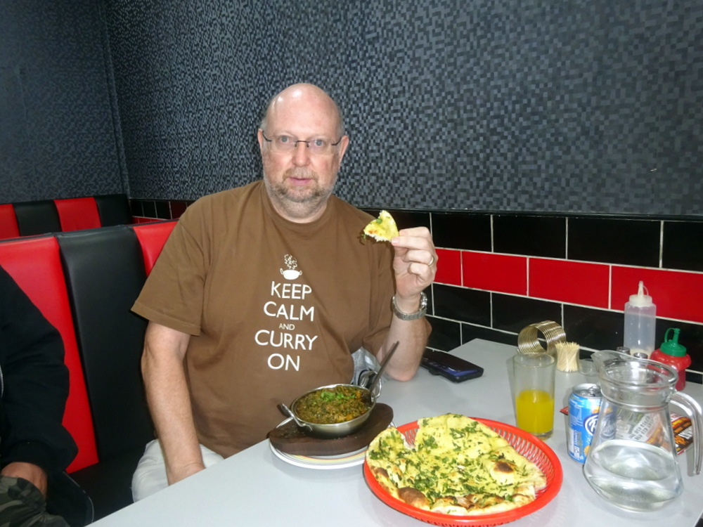 Once again, the Paratha, served whole, lived up to the level of expectation, a worthy Paratha. The Chapattis would be devoured without much comment. The Naan was – Spectacular! This was exactly what I had in mind: copious Coriander on top, the Chillies were truly embedded. The Naan was significantly – Thicker – than that served on Wednesday. Good as that one was, this was so much better, still Light and Fluffy with enough burnt bits, this Naan had it all. Around half of it would eventually go in John’s direction – the seagull – as he was now calling himself. John said he would consider ordering this in future. Chapatti John – no more?