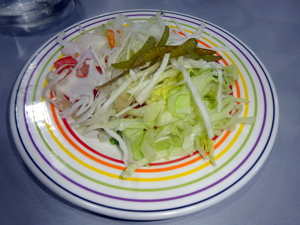 I returned to the table to find two complimentary plates of Salad, bring on the Pickled Chillies! The Mains were on the table as I returned from yet another visit to the doorway. Abbas sorted my phone, wi-fi is available.