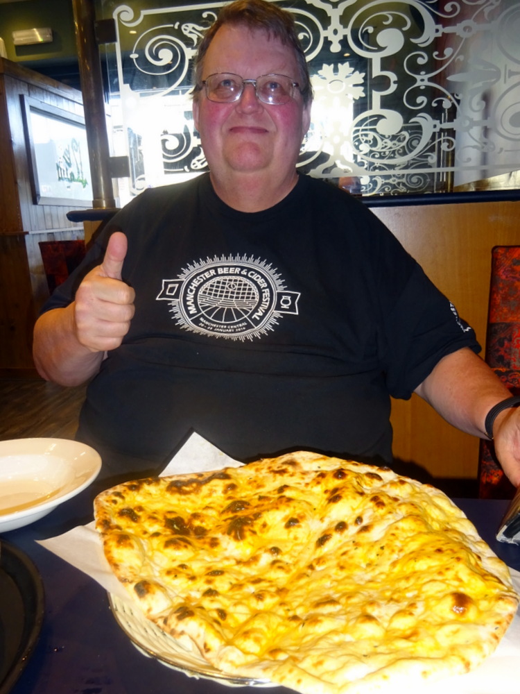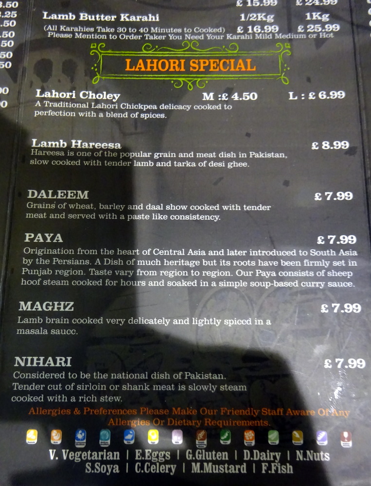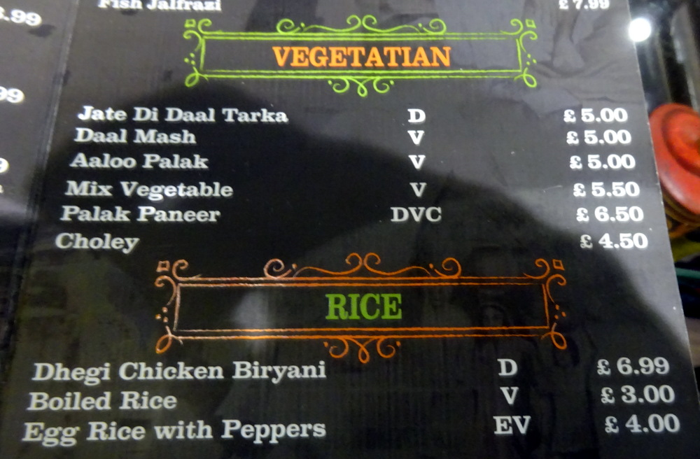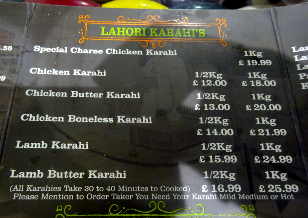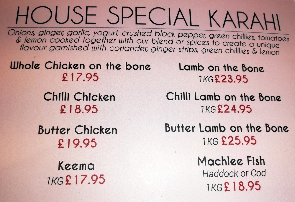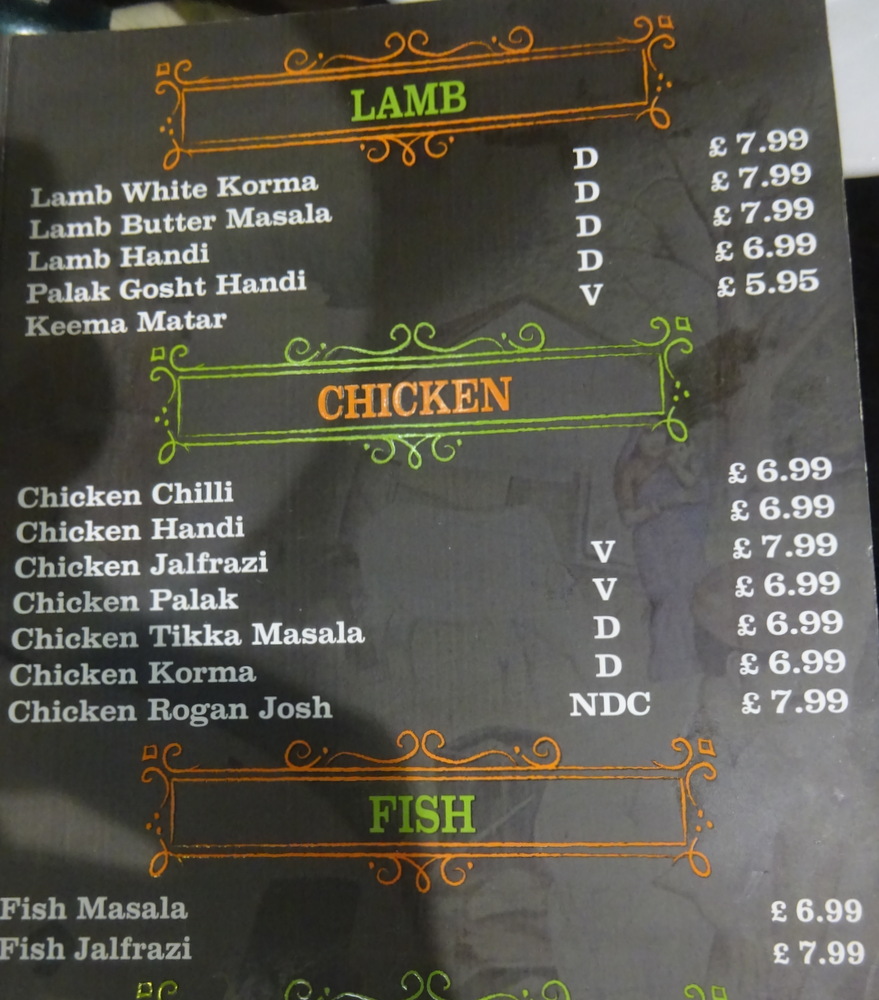 I had already decided upon a Plain Paratha (£1.50). Note, one Chapatti was £0.45, which is a departure from the Bradford norm of three Chapatti/Roti included with every Curry. Ricky had already established with Omar that he would never, ever, be charged for Bread at the Halifax branch. Haggle. Whilst Ricky announced – Naan (£1.50) – he could not help telling Omar about the price of Bread in Scottish Curry Houses, Aberdeen‘s in particular.