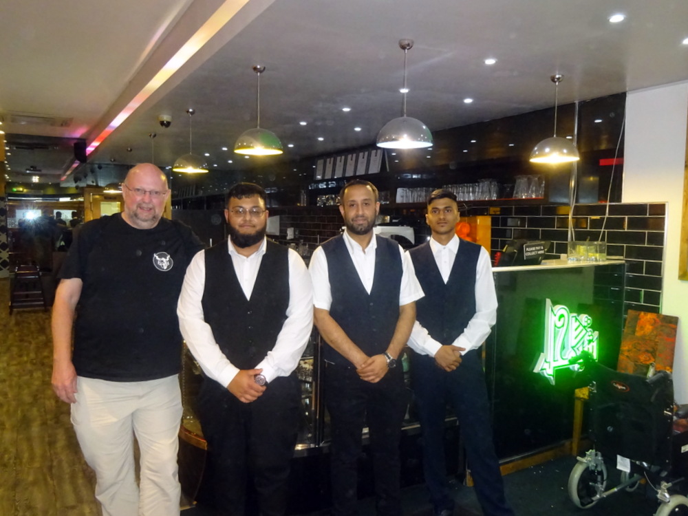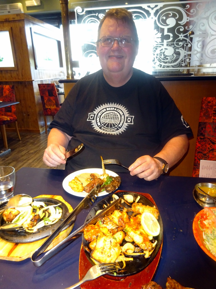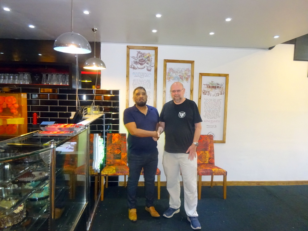 Hector and Ricky arrived at 17.00 after a couple of hours spent at nearby Sowerby Bridge. A very familiar face greeted us on entry – Omar! – son of Taj. Hector had not seen Omar for quite some time, Amar, son of Shrax, has been managing the mother shop for the last year or so. This is beginning to read like an Icelandic Saga. Shrax, Mein Host, was introduced just as he was leaving. The man behind the scenes, Shrax does the – hard work.