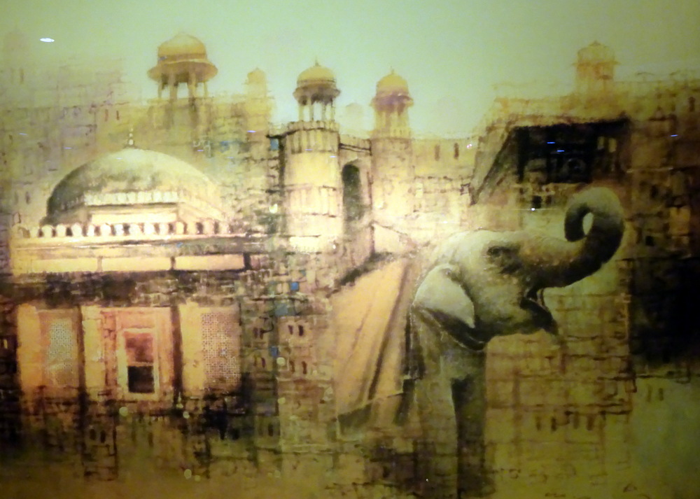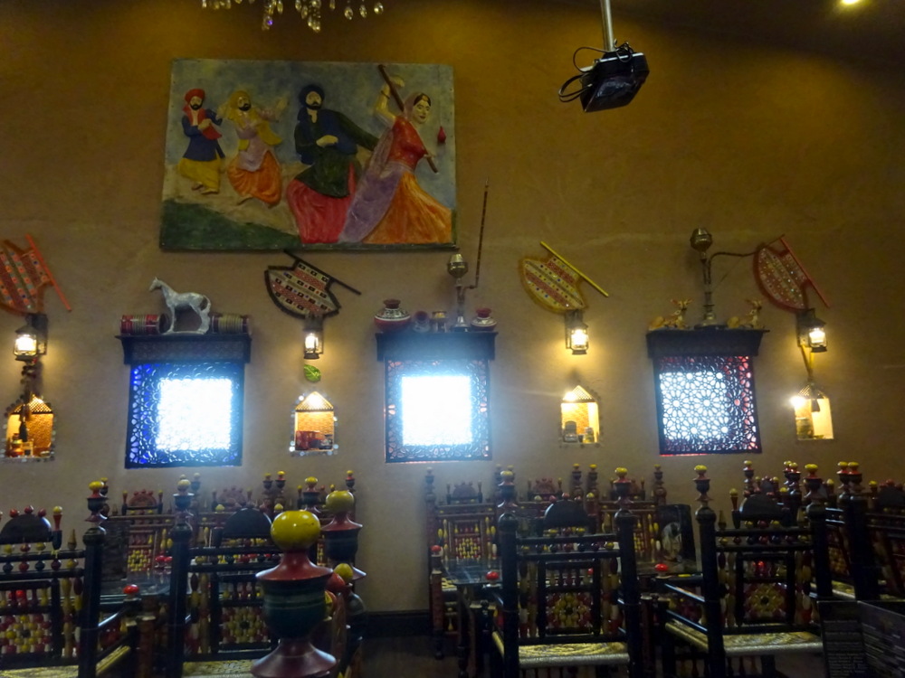 The artwork on the walls features contemporary versions of palaces from the Indian subcontinent. How far we have come from the 1960s – flock wallpaper?