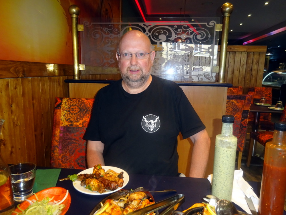Omar brought the Mix Grill Platter plus another platter with Tiger Prawns (£4.95), yay! It appears the World is determined to have Hector eat Prawns.
