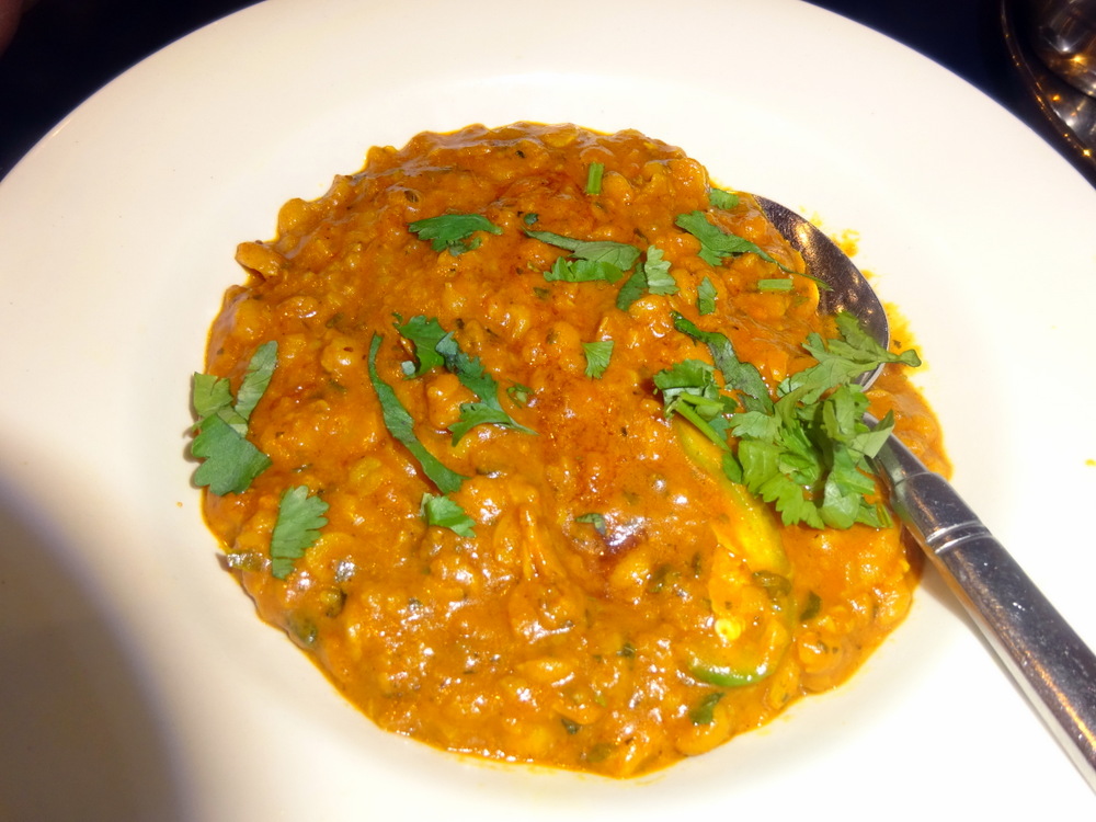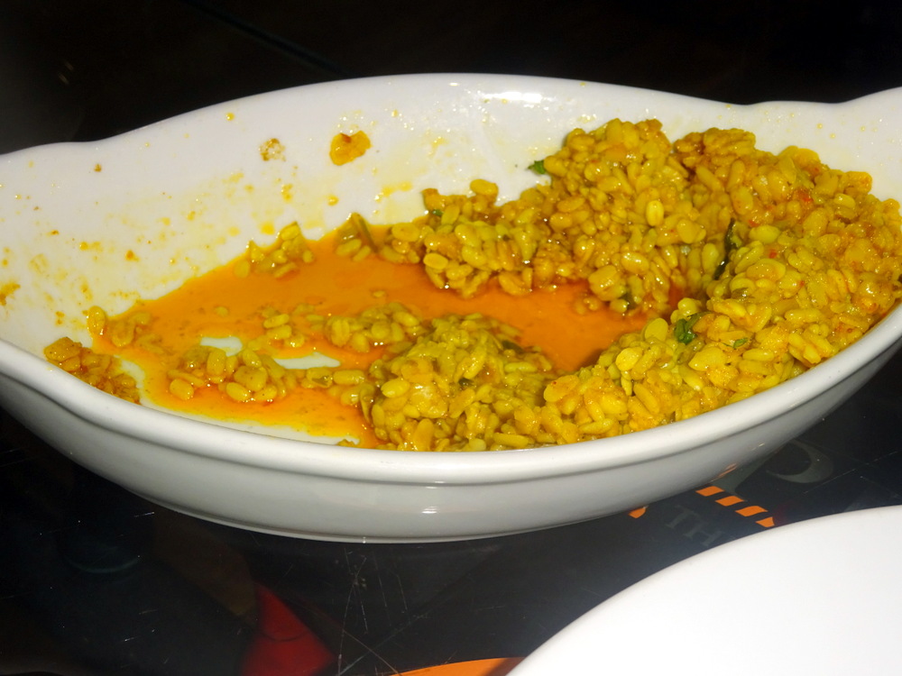 The Lamb was not – Bradford-small. We were not in Bradford. Tender, of course, some pieces required more chewing which forced the Flavours out. The Spice was never a challenge, it shouldn’t be. This was all about the Flavours, and thanks to setting the Seasoning at a decent level, all were revealed. Sucky Bones – the best cuts. Our first helpings cleared more than half, the top-up left enough to be magnanimous. I let Ricky have the last pieces, why? The Daal was – Stunning!